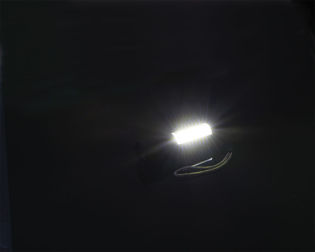 Laetav alumiiniumist taskulamp (400 mAh) mustas karbis, kaasas USB-C laadimiskaabel. Taskulambil on reguleeritava valgusvihuga COB-tuli ja võllil COB-tuli. Teie logo trükitakse kasti kaane keskele.