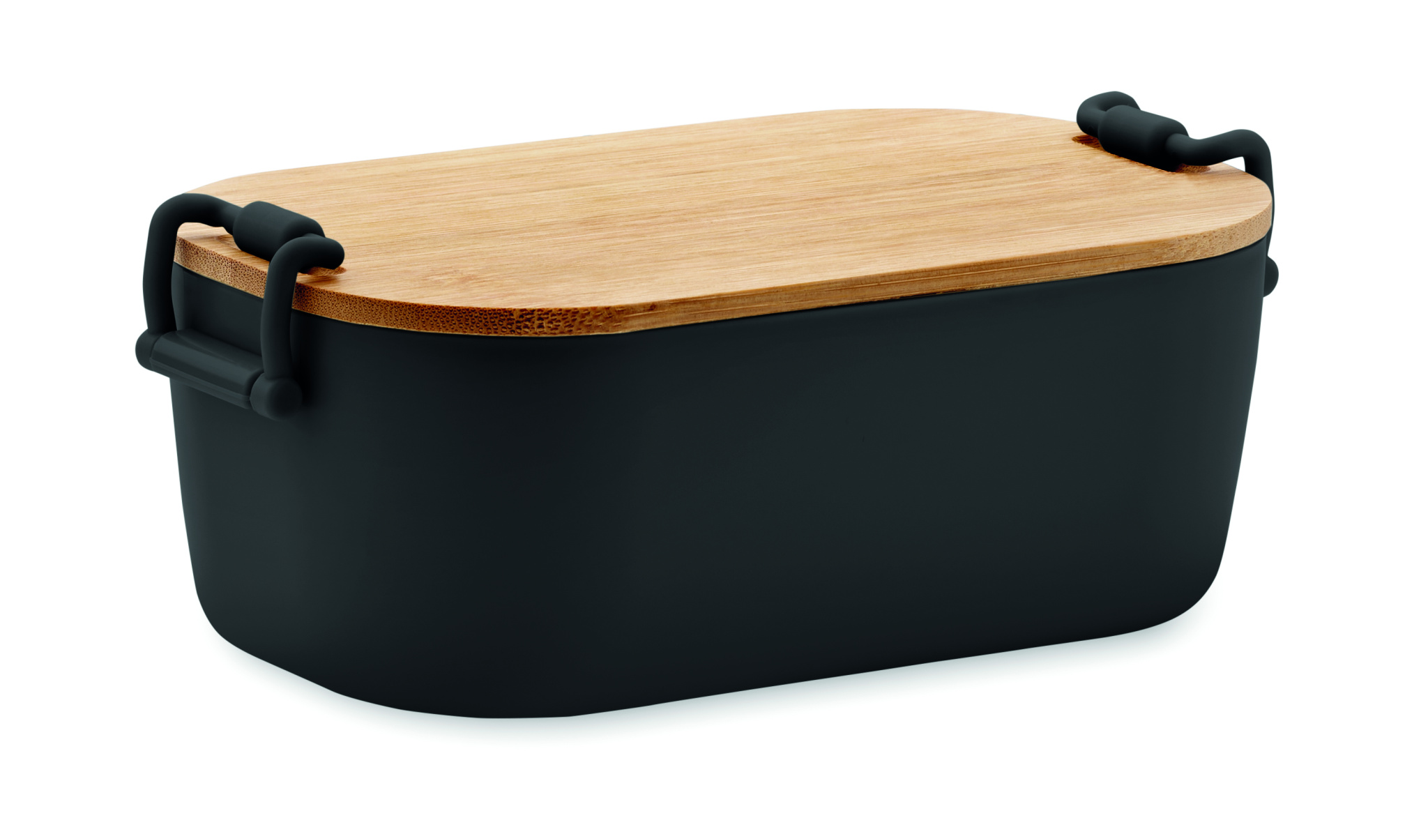 Must PP lõunasöögikarp 2 küljekinnitusega ja bambusest kaanega. Mahutavus 700 ml.
