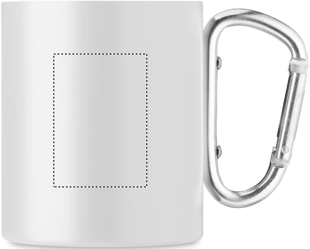 Logotrade reklaamtoote foto: Metallist kruus ja karabiiniga käepide