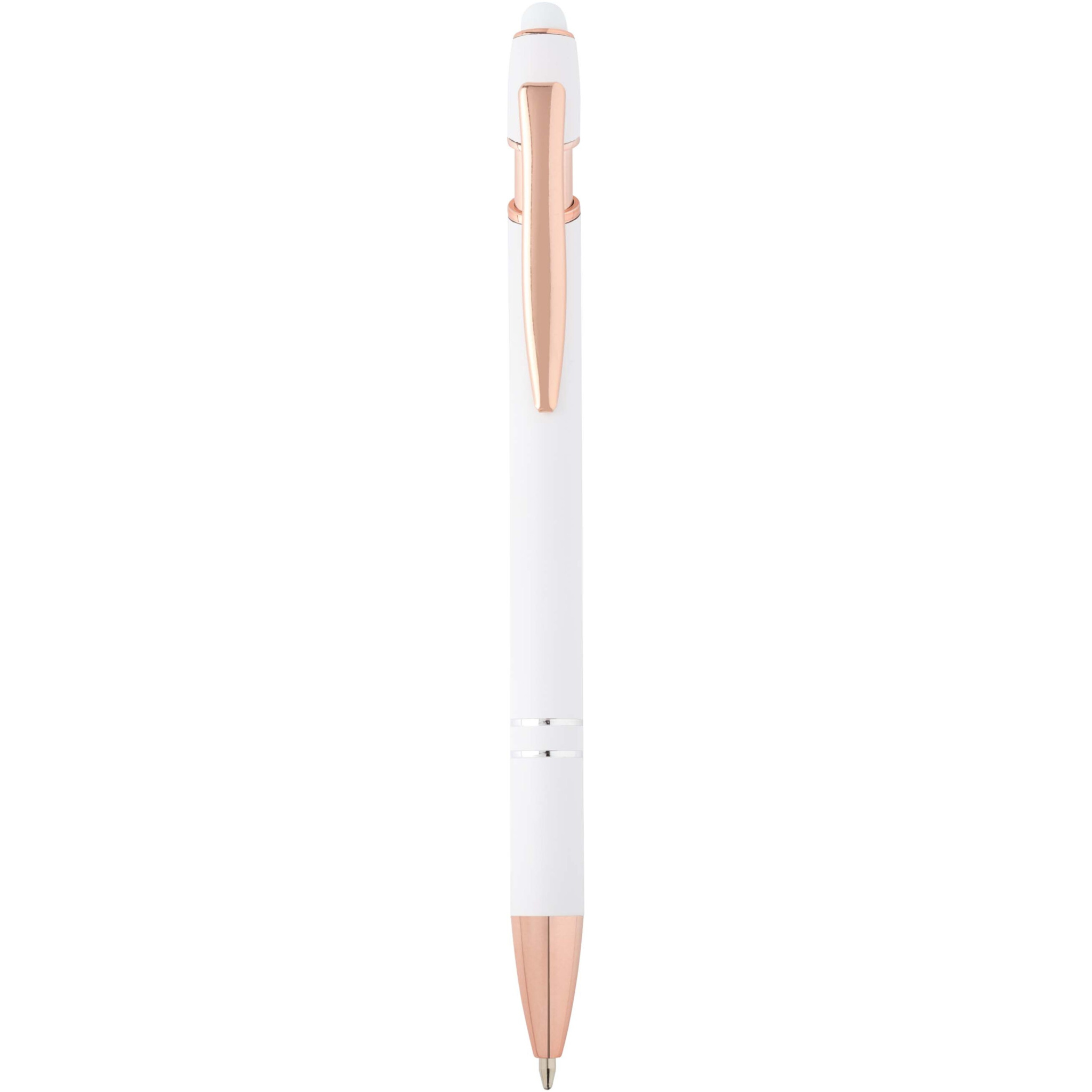 Roosa kuldse viimistlusega Nanna pastapliiatsil on taaskasutatud alumiiniumist silikoonist puutepliiatsiga toru. Taaskasutatud alumiinium vähendab prügilatesse sattuvate jäätmete hulka ja aitab säästa loodusvarasid, et vähendada kasvuhoonegaaside heitkoguseid. Tindi värv: must. Kirjutamise pikkus: 800 meetrit. Otsa suurus: 1,0 mm.