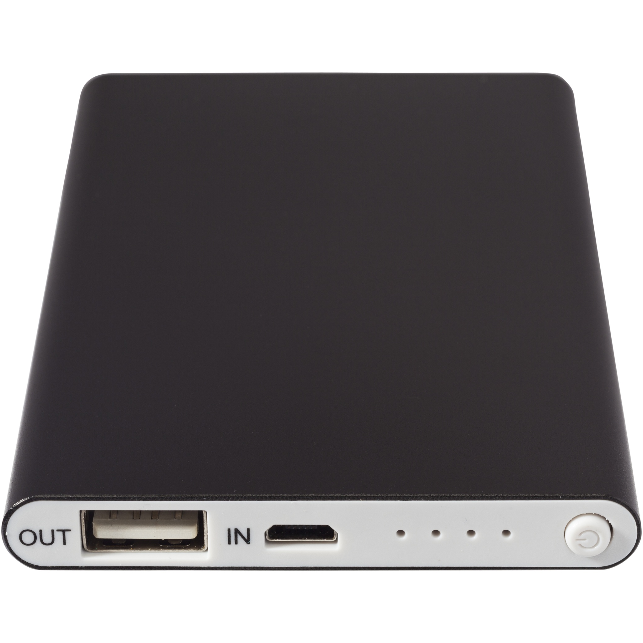 4000 mAh õhuke, kerge alumiiniumist akupank A-klassi liitiumpolümeerakuga. LED-indikaator süttib laadimise ajal ja kuvab toitepangas järelejäänud aku mahtuvuse. Toitepanga sisend on 5V/1A ja väljund 5V/1A. Kaasas USB-mikro-USB laadimiskaabel. Tarnitakse tühjas valges kinkekarbis.