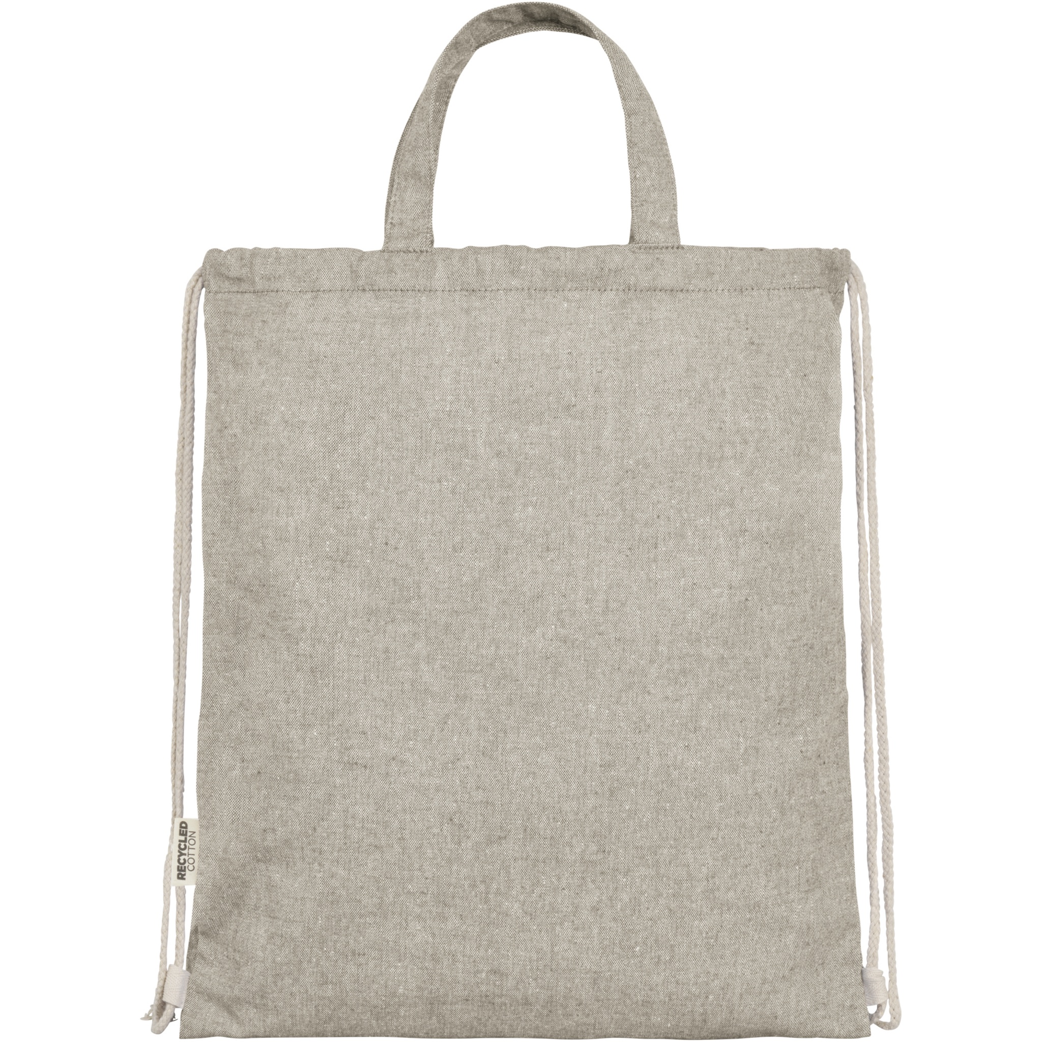 Pingutusnööriga kott on valmistatud 150 g/m² taaskasutatud puuvillasest polüestri segust. Suur põhisahtel naturaalset värvi puuvillase nööriga. Taaskasutatud puuvilla toodetakse tarbimiseelsetest jäätmetest, mis tekivad tekstiilitehastes lõikamisprotsessi käigus. Sarnased värvid segatakse kokku, nii et täiendavat värvimist pole vaja. Taaskasutatud puuvilla olemuse tõttu võib esineda väga väikest värvimuutust. See lisab selgelt autentsema välimuse. Iga seljakotiga on kaasas ka Aware™ jälgija. See uuenduslik funktsioon võimaldab kasutajatel QR-koodi abil jälgida oma kauba päritolu ja teekonda, suurendades tarneahela läbipaistvust ning soodustades tugevamat seost toote ja selle tootmisprotsessi vahel. Vastupidavus kuni 5 kg kaalule. Käepideme pikkus: 14 cm.