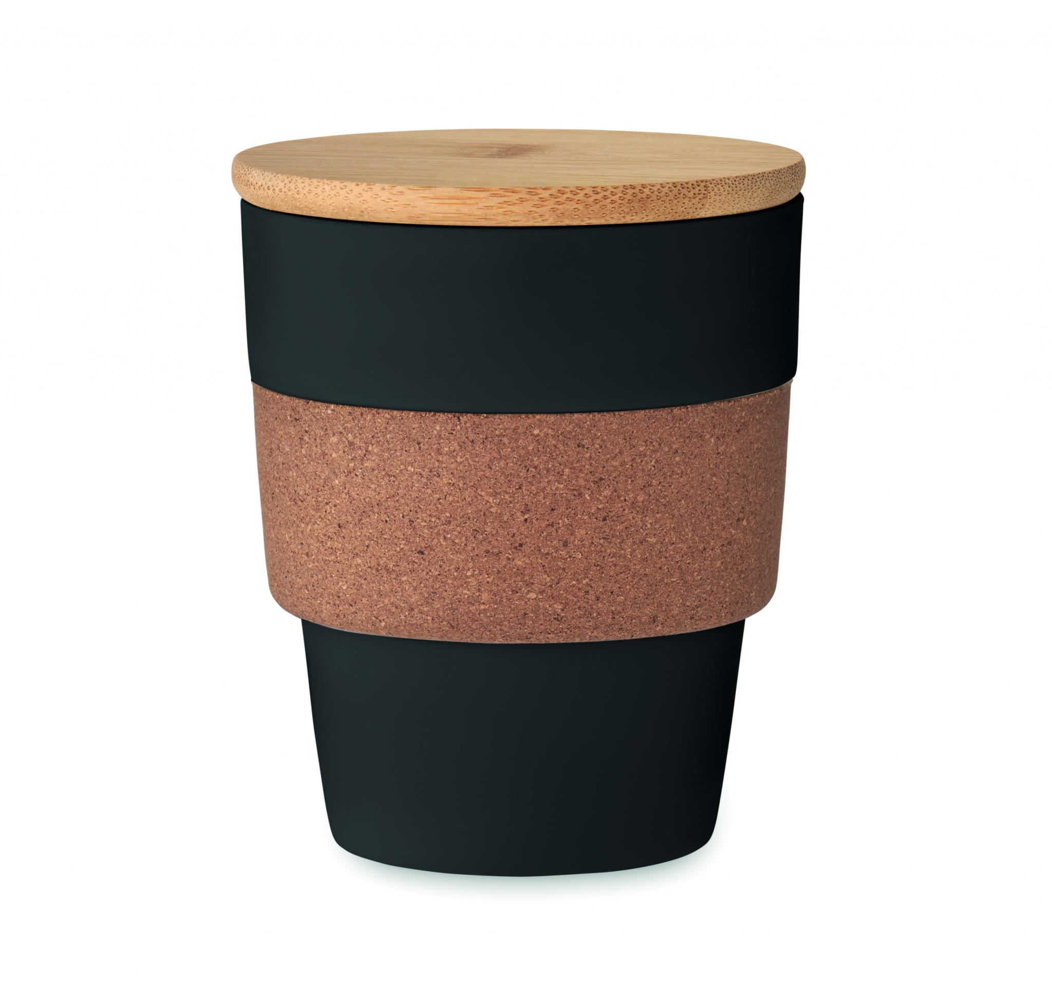 Taaskasutatud PP-st ühe seinaga trummel, korgist kaitseümbris ja bambusest kaas. Mahutavus: 300 ml. Kuna see on ühe seinaga kruus, võib soojusülekanne siiski toimuda. Bambus on looduslik toode, ühe eseme värvis ja suuruses võib esineda väikesi erinevusi, mis võivad mõjutada lõppviimistlust.