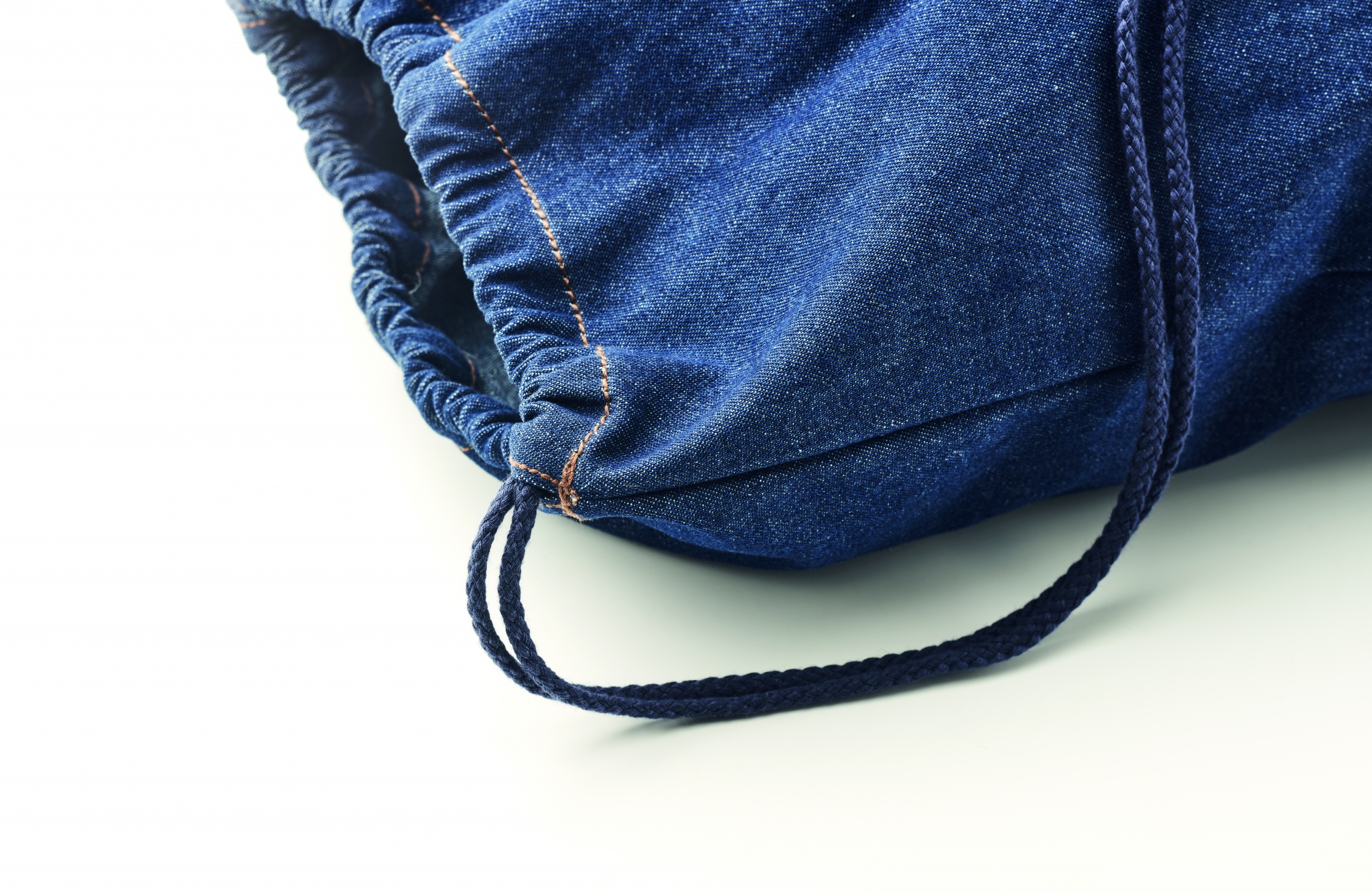 50% taaskasutatud puuvillast värviline denim ja 50% puuvillane nööriga kott. 250 gr/m².