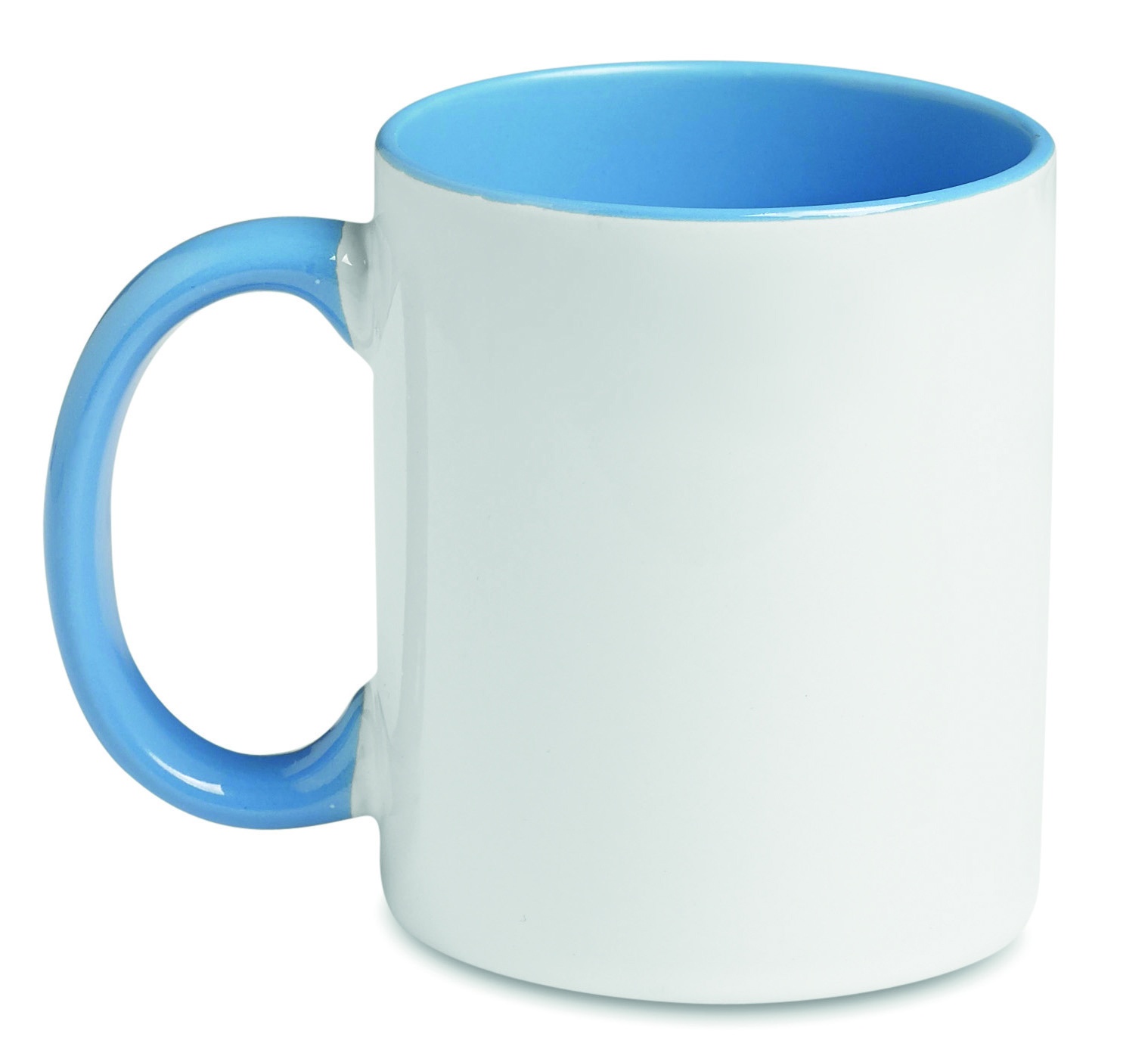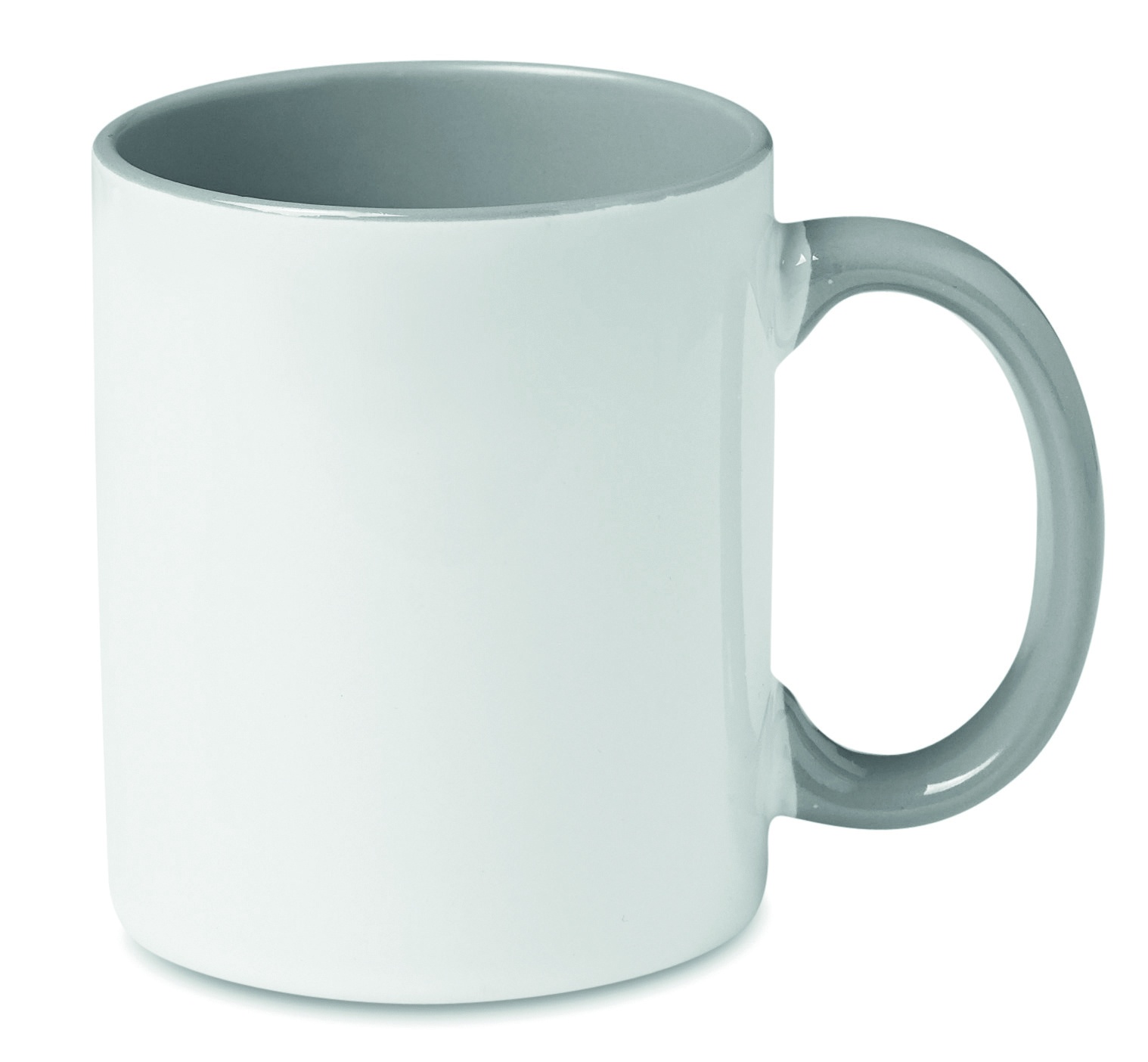 Keraamiline kruus mahuga 300 ml spetsiaalse kattega sublimeerimiseks värvilise käepidemega ja sees. Individuaalne pakkimine valgesse pappkarpi.