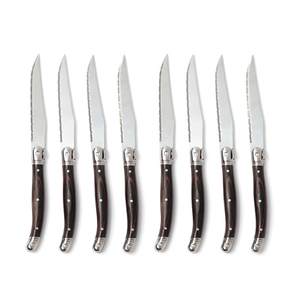 Kvaliteetsed lihanoad tüüpilises Prantsuse stiilis bistroostiilis. Must pakka puidust käepide ja kvaliteetsed roostevabast terasest terad. Teral on peen rest, mis võimaldab võimalikult väikese takistusega toitu läbi lõigata. Neljast noast koosnev komplekt, mille saate kodus hõlpsasti kahvlitega kokku sobitada. Pakitud eksklusiivsesse kinkekarpi.