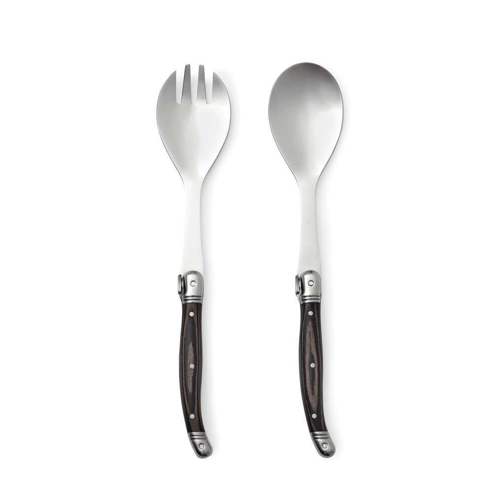 Kvaliteetsed salatiserverid tüüpilises prantsuse bistroo stiilis. Must pakkapuidust käepide ja kvaliteetne roostevabast terasest tera. Pakendatud eksklusiivsesse kinkekarpi.