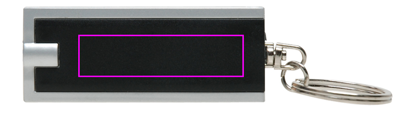 Litteä ja suorakaiteen muotoinen avaimenperä moderni design ja LED-valo sisällä. Avaimenperä on valmistettu metallista. 2 paristoa mukana. Painamme logosi painikkeen vastakkaiselle puolelle.