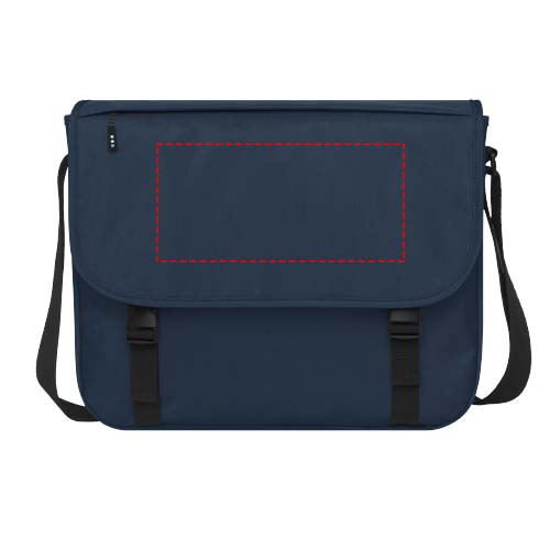 Kestävä, GRS-sertifioitu RPET-laukku kannettavalle, joka on valmistettu 60-prosenttisesti kierrätysmateriaaleista. Suuri vetoketjullinen päälokero, jossa on pehmustettu 15”:n kannettavan tietokoneen suojatasku ja etulokero (kummassakin tarranauhakiinnitykset). Mukana peiteläppä, jossa vetoketjullinen tasku ja solki. Takana on mukava pehmustettu ja säädettävä olkahihna ja vetokahvatunneli.