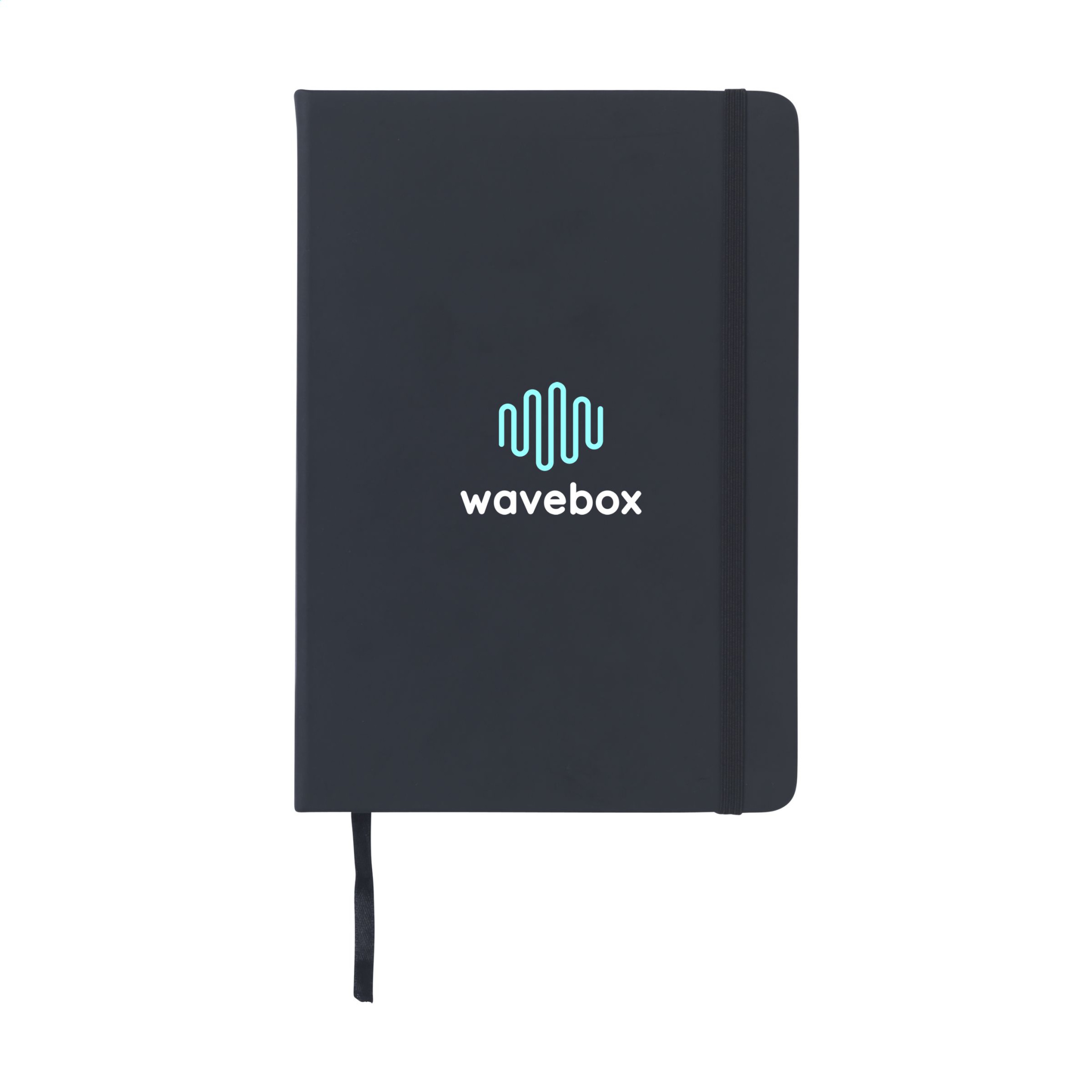 Käytännöllinen muistivihko A5-muodossa. Kovalla PU-päällysteellä, n. 80 arkkia/160 sivua kermanväristä, vuorattua FSC Mix -sertifioitua paperia (70 g/m²), joustava suljin ja nauhamerkki.