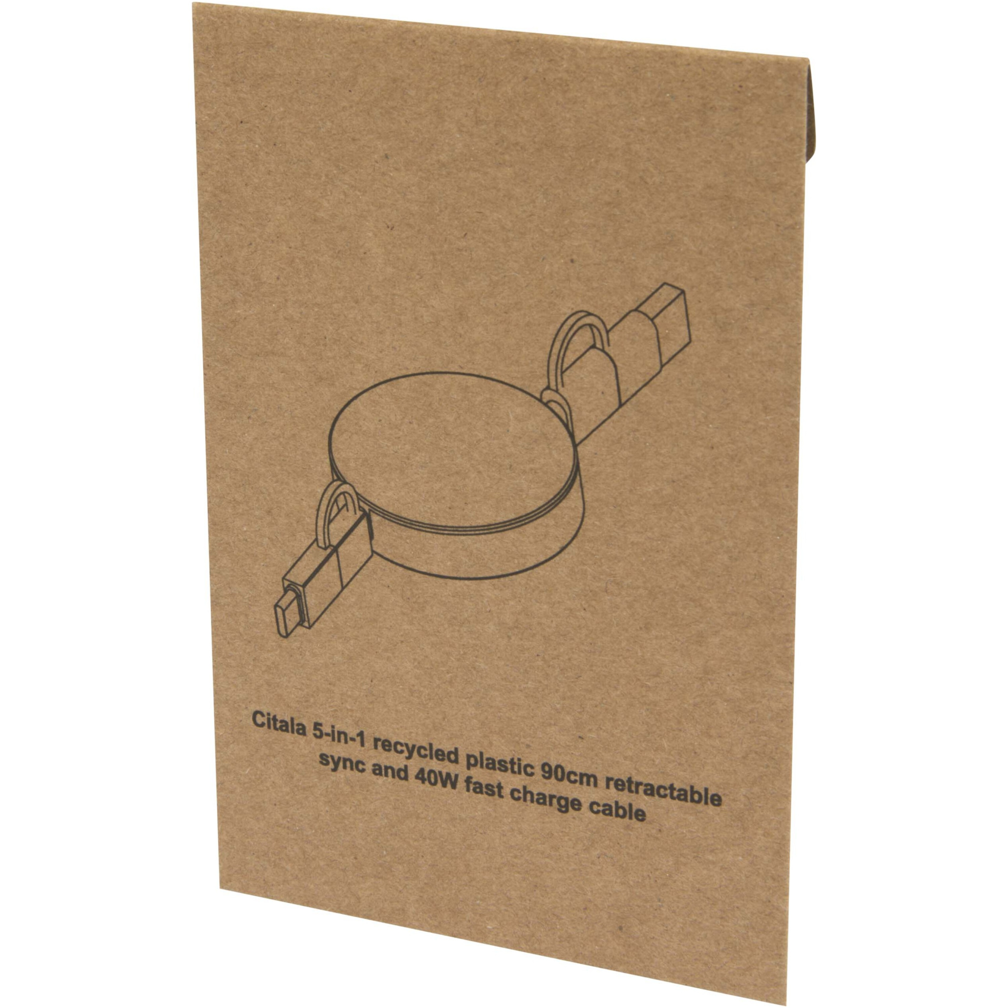 Logo trade liikelahjat mainoslahjat kuva: Citala kierrätysmuovinen 40 W:n ja 90 cm:n sisäänvedettävä datasynkronoiva 5-in-1-pikalatauskaapeli