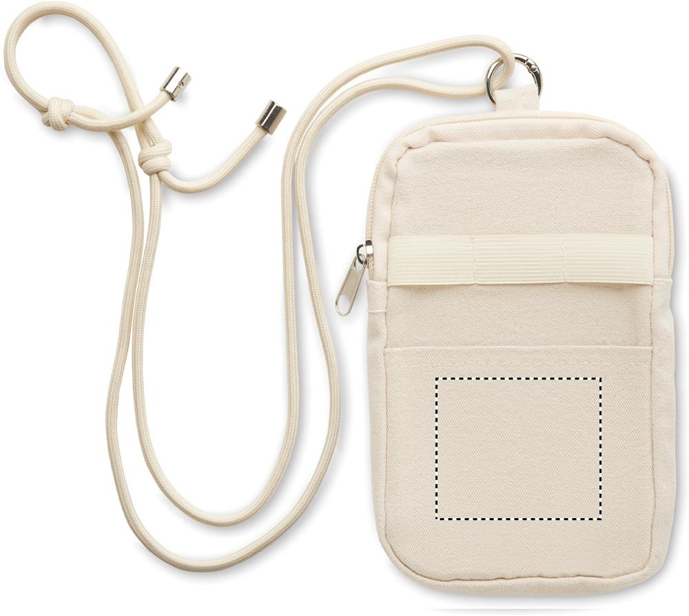 Crossbody-älypuhelinlaukku kierrätettyä puuvillaa, säädettävällä RPET-polyesterinauhalla ja avotaskulla edessä. 280 g/m².