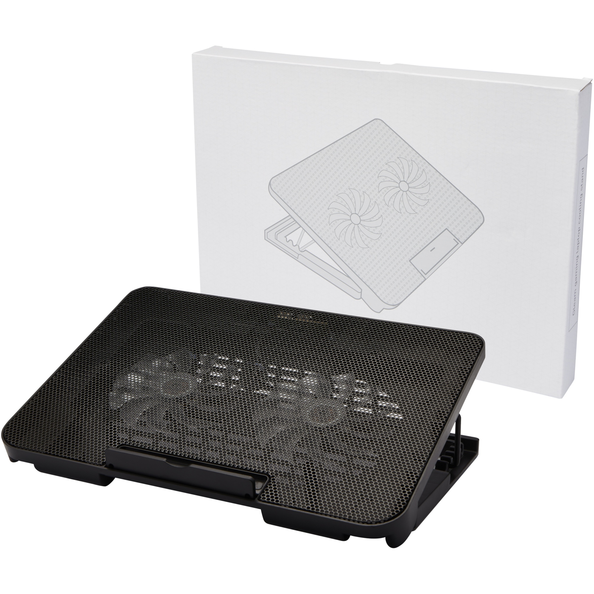 Kannettavalle tietokoneelle suunniteltu jäähdytysteline, jossa on neljä säädettävää korkeusasetusta pelien pelaamiseen tai elokuvien katseluun mukavimmassa kulmassa (10°- 23°). Kahden hiljaisen tuulettimen tuottama voimakas ilmavirta estää kannettavan tietokoneen ylikuumenemisen. Suuri tasainen pinta on yhteensopiva markkinoiden useimpien kannettavien tietokoneiden kanssa ja kestää enintään 20 kg:n painon. Jalusta voidaan taittaa kokoon kuljetuksen helpottamiseksi. Kaksi integroitua USB-porttia, joita voidaan käyttää USB-keskittimenä, jonka USB 2.0 -tuettu siirto voi olla enintään 60 Mt/s. Toimitetaan luontoa säästävästä materiaalista valmistetussa lahjapakkauksessa.