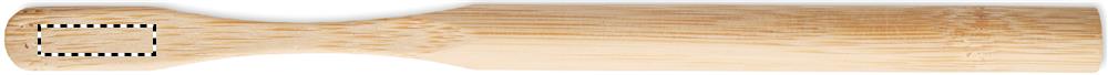 Bambuinen hammasharja nailonharjaksella bambutelineessä, pakattuna voimapaperi pakkaukseen.
