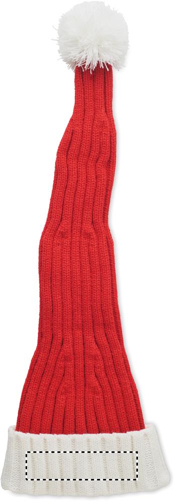 Pitkä neulottu tonttupipo. Materiaali pehmeää RPET polyesteria.