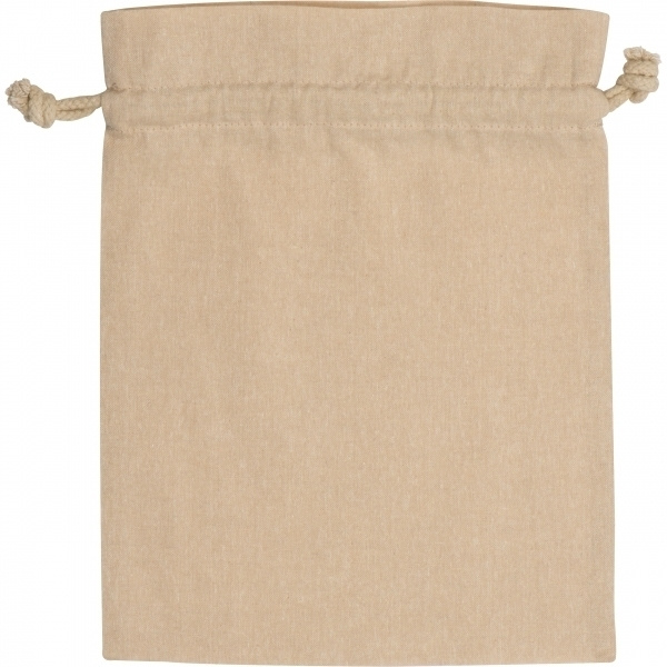 Öko-Tex® STANDARD 100 -sertifioitu, kierrätetty, ympäristöystävällinen puuvillapussi, jonka neliömassa on 110g/m². Logosi painetaan toiselle puolelle.