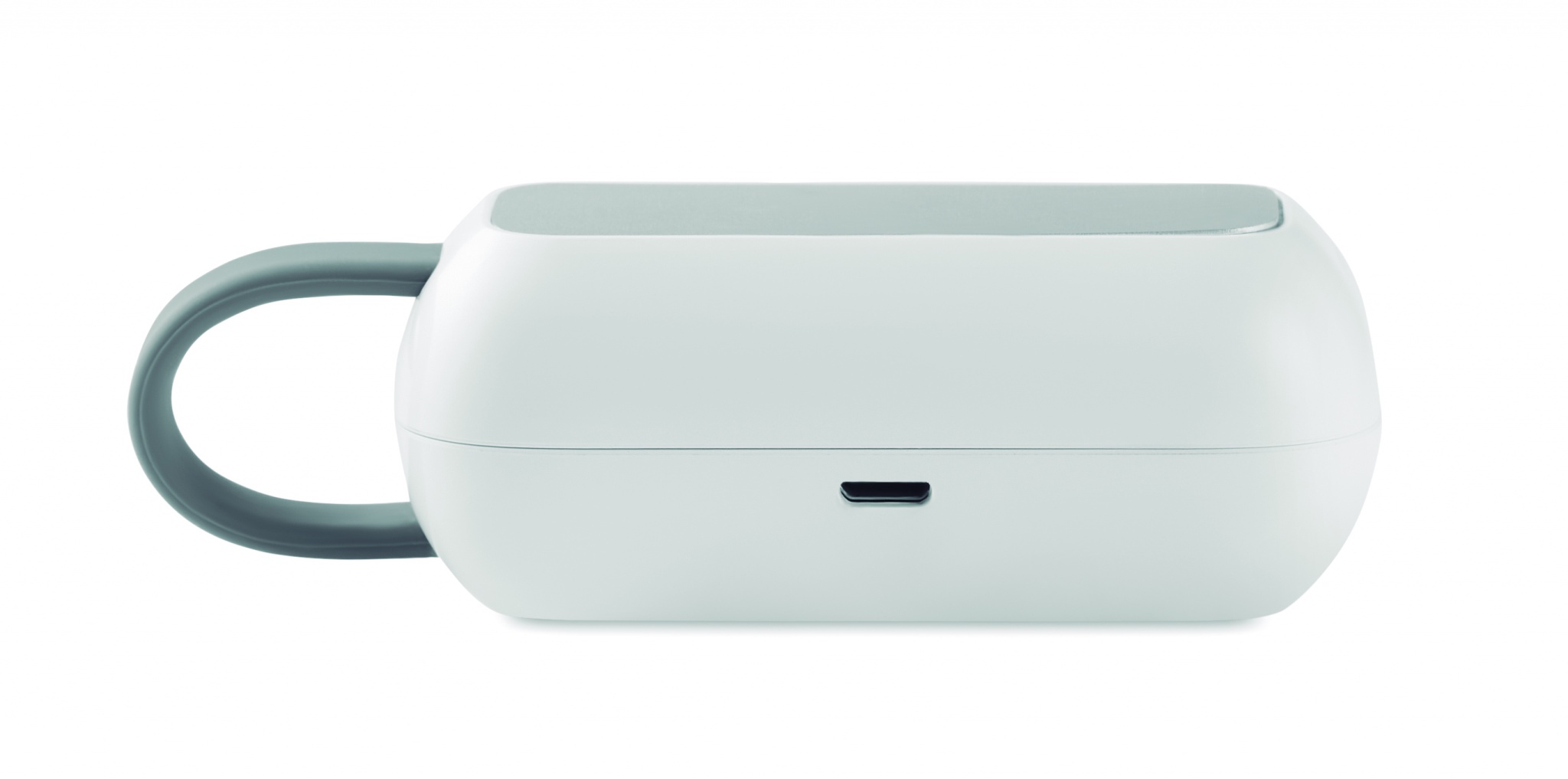 TWS 5.0 langattomat kuulokkeet, 30 mAh n akku. Arvioitu toistoaika noin 3 tuntia, sisältää mikro USB latauskaapelin. Toimitetaan latausasemana toimivassa rasiassa, latausasemassa uudelleen ladattava 400 mAh akku.