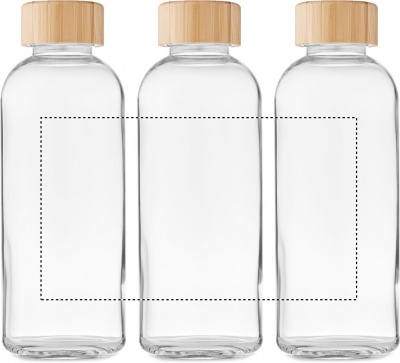 650 ml lasipullo bambu korkilla, tuote on vuoto vapaa. Luonnollisen materiaalin (bambu) vuoksi, tuotteiden värissä/ koossa saattaa olla erinäisyyksiä ja tämä voi vaikuttaa painatuksen lopputulokseen.
