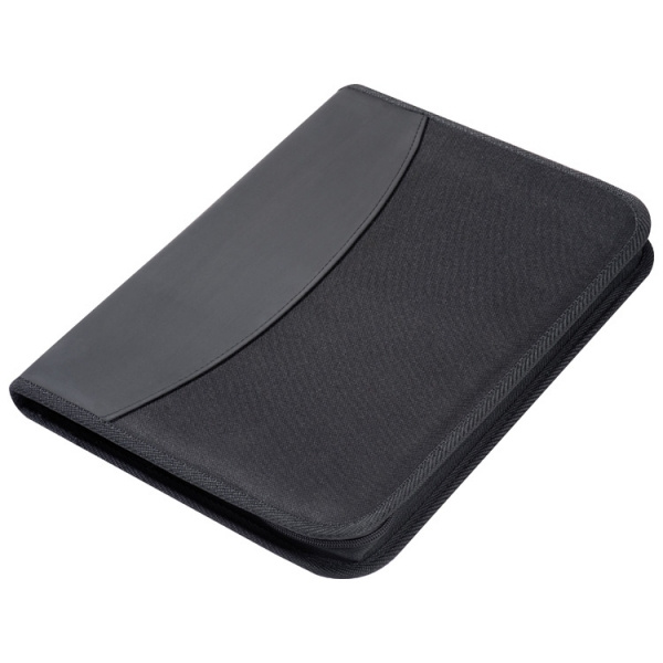 Salkku kestävästä 600D polyesterista; eri osastoilla, 270° vetoketjulla ja neutraalilla kirjoitusalustalla (40 sivua.) Painamme logosi Soft PU -reunukseen.