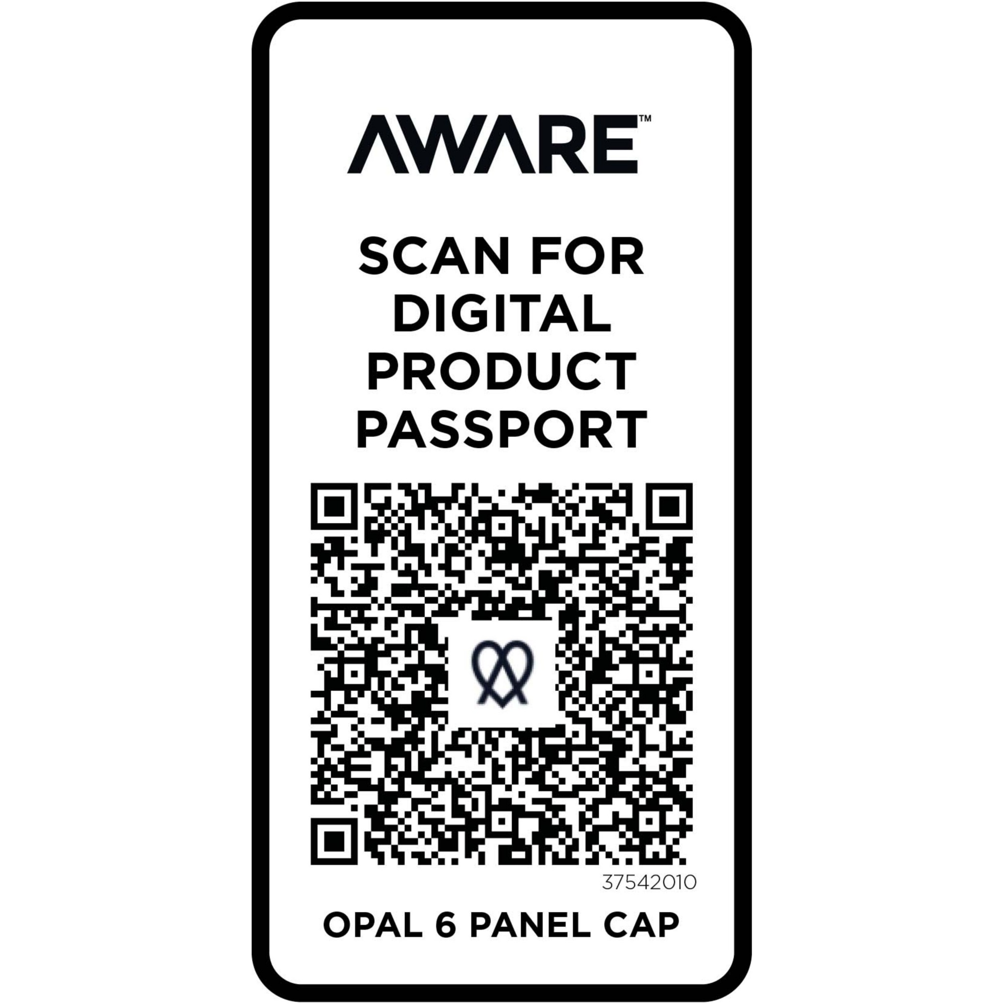 6-paneelisen Opal-lippalakin raaka-aineista 70 % on kierrätettyä puuvillaa ja 30 % kierrätettyä muovia. Lippalakki on suunniteltu 58 cm:n ympärysmittaiselle päälle, ja metallisoljen avulla sitä on helppo ja turvallista säätää. Lippalakin valmistuksessa on käytetty Cyclo®-kierrätyskuituja, joissa käytetään esilajiteltua jätettä, mikä määrittää langan värin. Nämä kuidut vähentävät neitsytraaka-aineiden kysyntää ja ovat myös osoitus sitoutumisesta kiertotalouteen, joka kannustaa jätteen vähentämiseen ja tukee suljettuun kiertoon pohjautuvaa järjestelmää. Jokaisen lippalakin sisältyy myös Aware™-jäljitin. Tämän innovatiivisen ominaisuuden avulla käyttäjät voivat jäljittää tuotteensa alkuperän ja matkan QR-koodin avulla, mikä lisää läpinäkyvyyttä toimitusketjussa ja edistää vahvempaa yhteyttä tuotteen ja sen tuotantoprosessin välillä.
