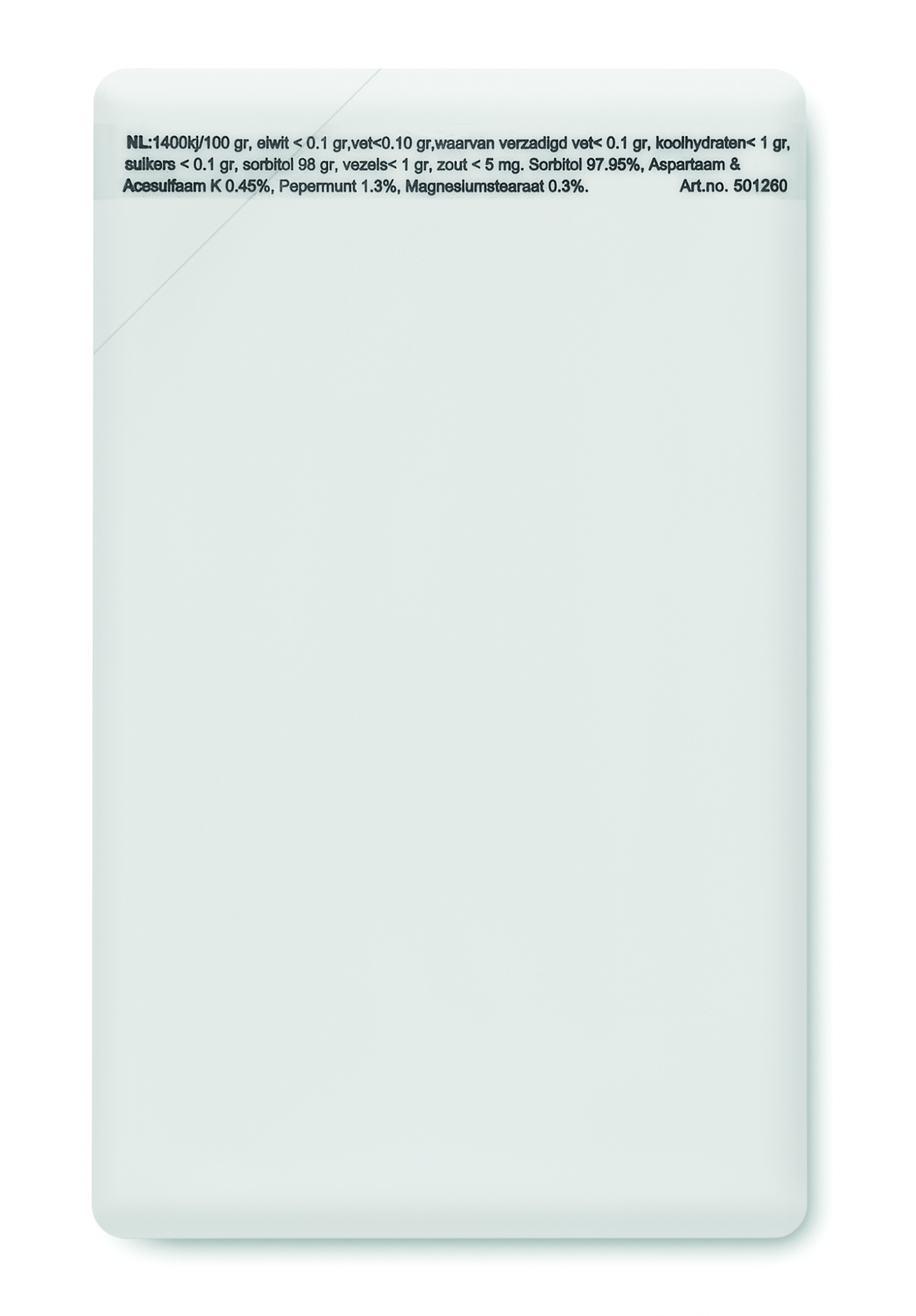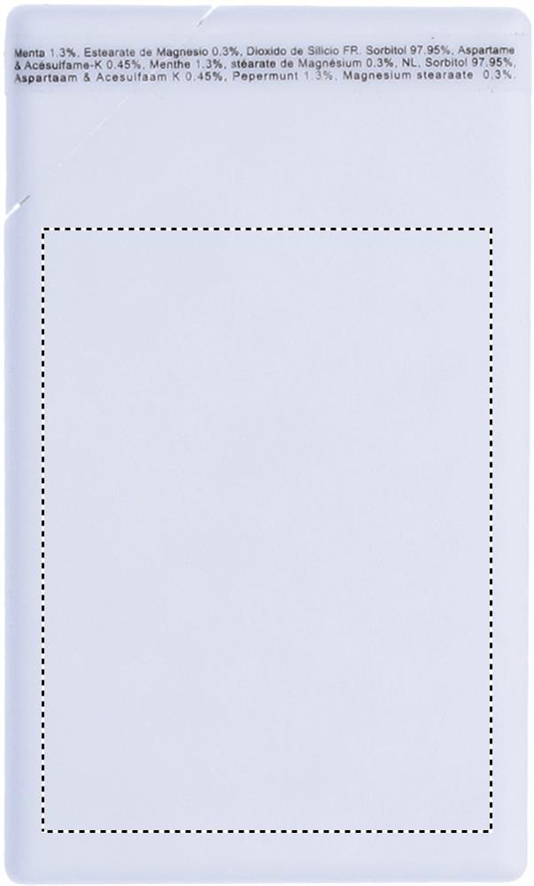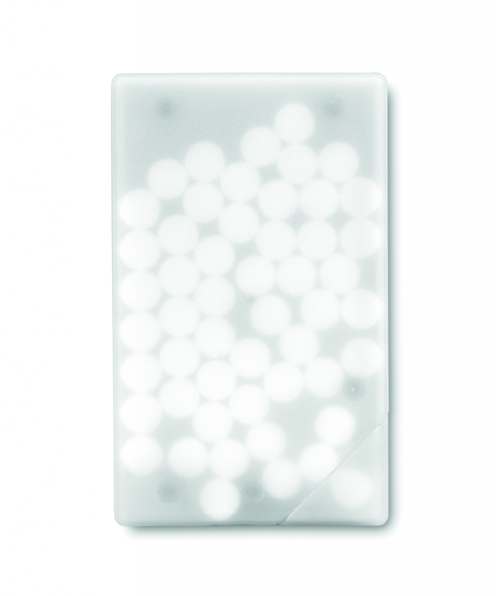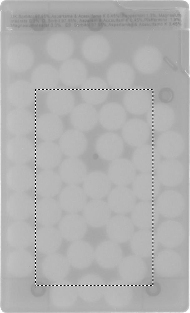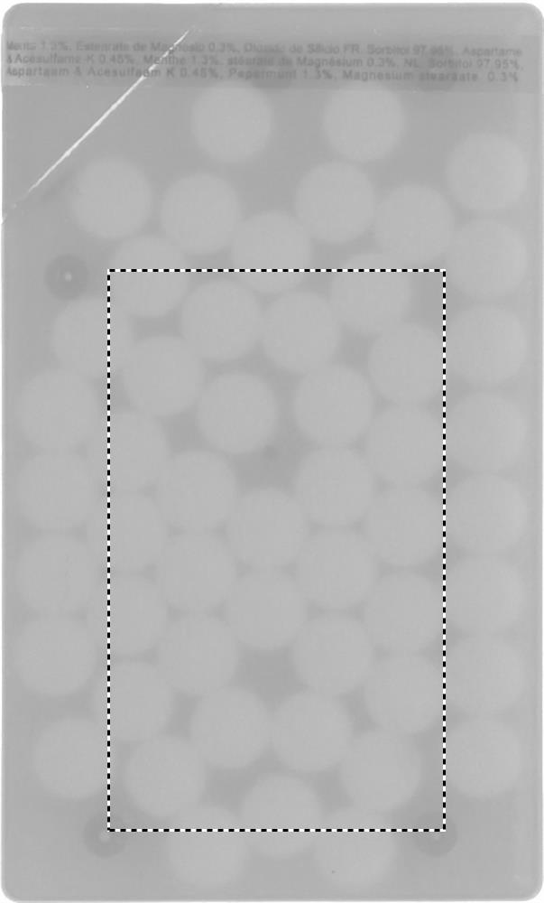 Pastillien annostelija luottokortin muodossa, sisältää 8 grammaa pastilleja.