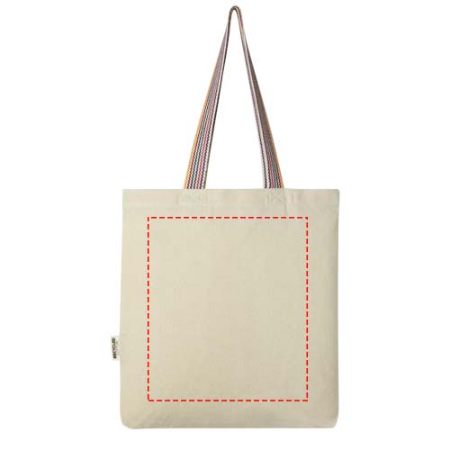 Rainbow 180 g/m² kangaskassi kestävämpi vaihtoehto tavalliseen puuvillakassiin verrattuna. Tuotannossa kierrätetystä puuvillasta valmistetussa ostoskassissa on kantokahvoina 25 cm:n pituiset sateenkaarihihihnat sekä 3,5 cm:n pohjalevike, joka antaa hieman lisää tilaa tavaroille. Kantokyky 5 kg.
