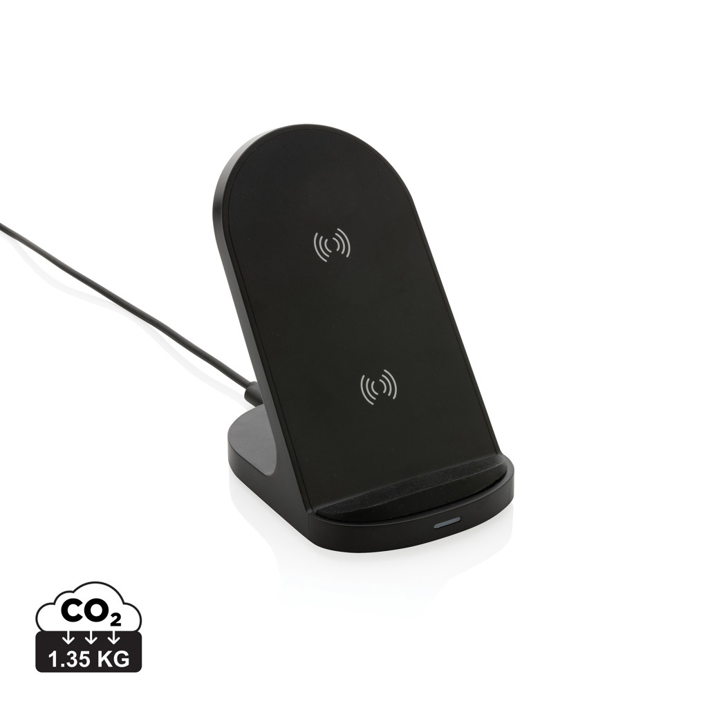15 W:n langaton pikalaturiteline kahdella integroidulla latauskelalla. Jalusta tukee sekä vaaka- että pystylatausta. Valmistettu RCS (Recycled Claim Standard) -sertifioiduista kierrätysmateriaaleista. Kierrätetty kokonaissisältö: 56 % tuotteen kokonaispainosta. RCS-sertifiointi varmistaa kierrätysmateriaalien täysin sertifioidun toimitusketjun. Mukana 150 cm PVC-vapaa kierrätetystä TPE-materiaalista valmistettu latauskaapeli. ; Tuote ja tarvikkeet 100% PVC-vapaita. Pakattu FSC-sekoituksesta valmistettuun pakkaukseen. Langaton lataus yhteensopiva Androidin uusimpien sukupolvien, iPhone 8:n ja sitä uudempien kanssa. Tulovirta: 12V/1.67A. Langaton lähtövirta: 9V/1,5A 15W.