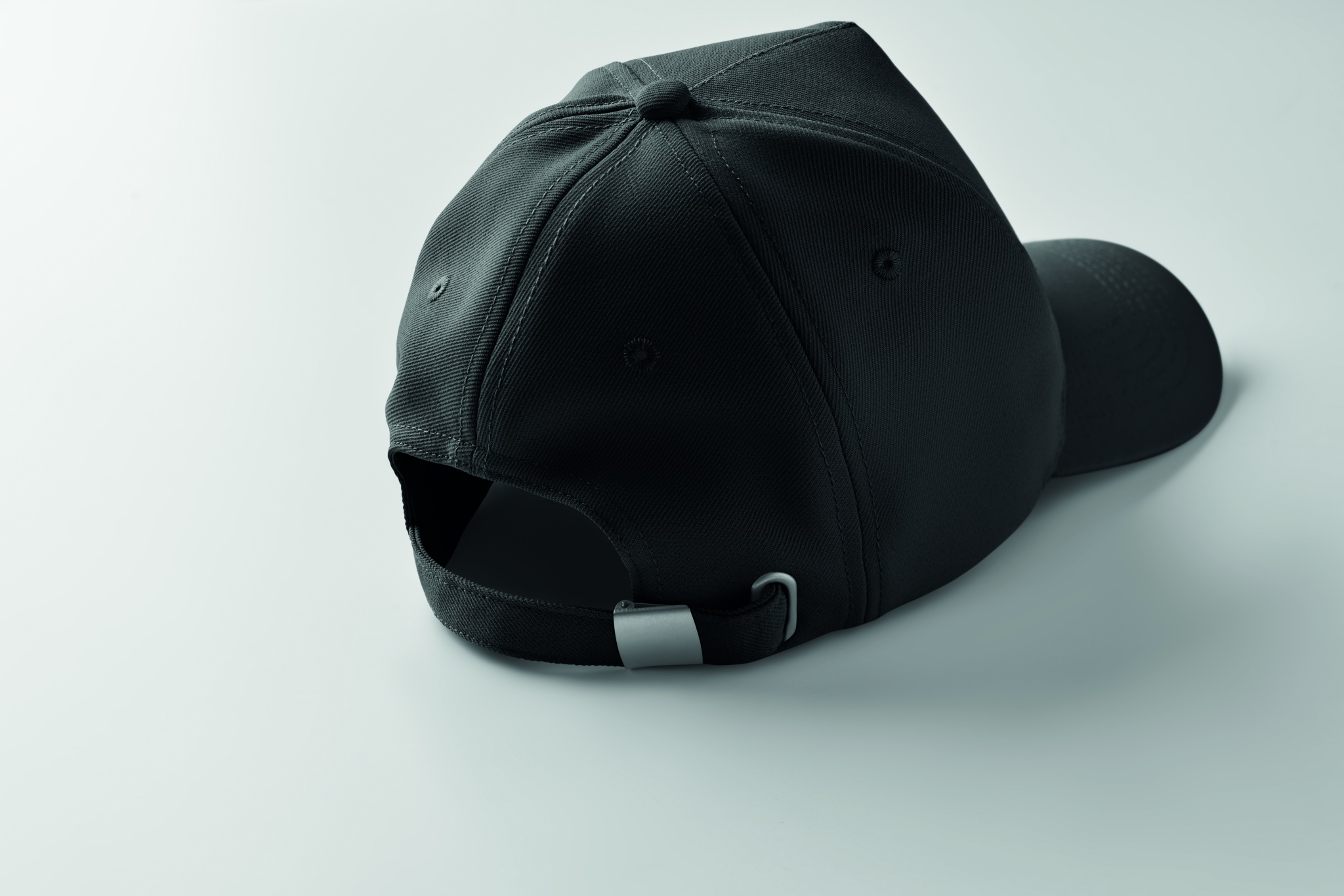 Lippalakki RPET -polyesteriä, 210 g/m². Lakissa viisi paneelia ja takana terässolki Koko 7 1/4.