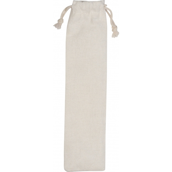Ruokailuvälinesarja, jossa on haarukka, veitsi ja lusikka puusta ja ruostumattomasta teräksestä lukittavassa puuvillapussissa. Logosi painetaan pussiin.