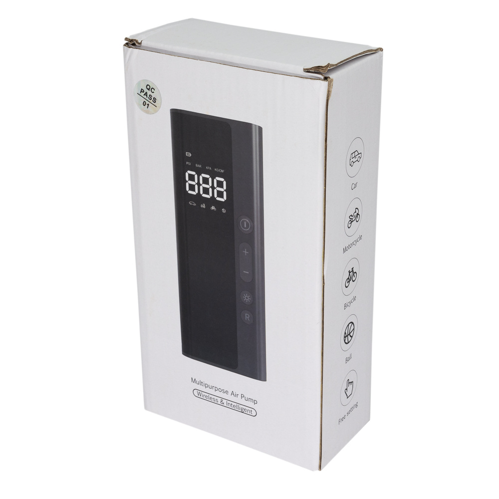 Sähköpumppu on kätevä ja käytännöllinen työkalu, joka mahdollistaa erilaisten esineiden, kuten polkupyörän renkaiden, pallojen, ilmapatjojen ja muiden, nopean ja helpon täyttämisen. Tämä langaton pumppu saa virtansa ladattavasta akusta, joten se on riippumaton ulkoisista virtalähteistä ja sopii erinomaisesti matkakäyttöön.