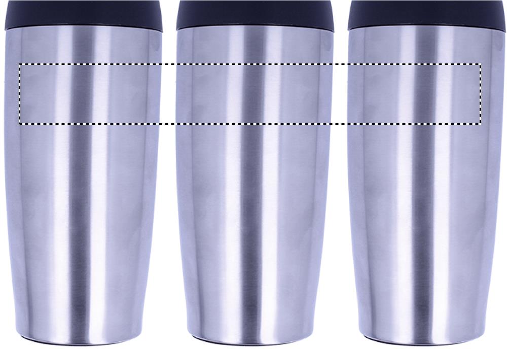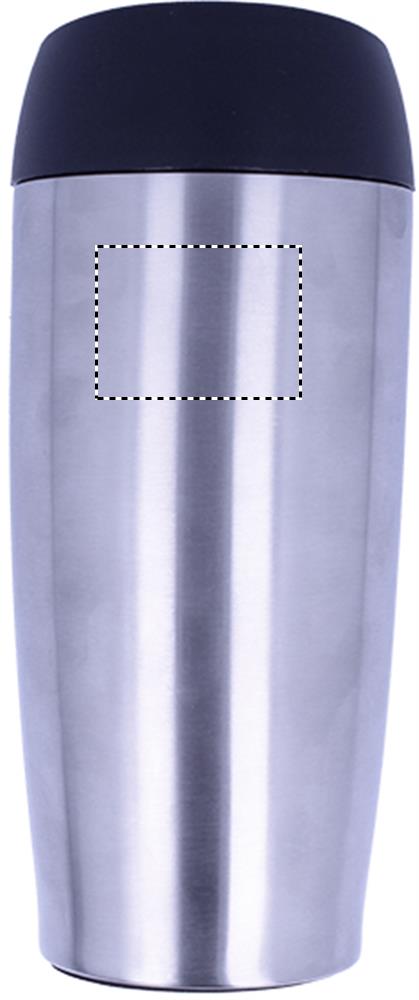 Kaksiseinäinen ruostumattomasta teräksestä valmistettu 350 ml termosmuki, PP- kansi painomekanismilla, vuoto vapaa.