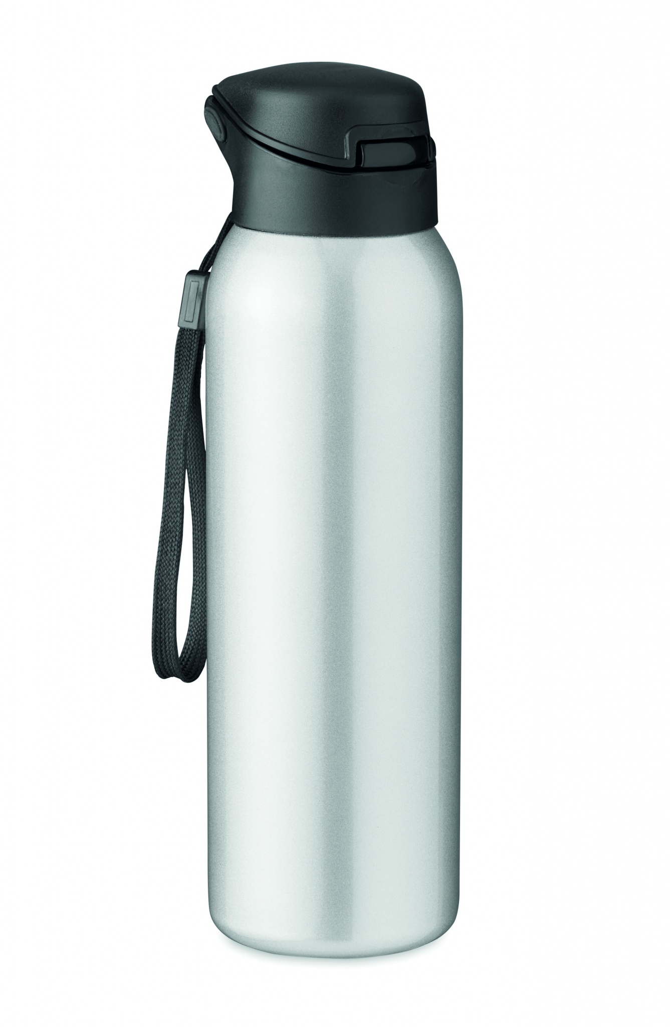 Kaksiseinäinen ruostumattomasta teräksestä valmistettu termospullo, jossa on integroitu pilli ja korkki ripustuslenkillä. Tilavuus 580 ml.