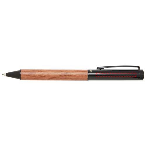 Ylellisesti muotoiltu kierrettävä kuulakärkikynä, jossa on puinen alaosa. Musta muste, pakattu LUXE-lahjapakkaukseen.