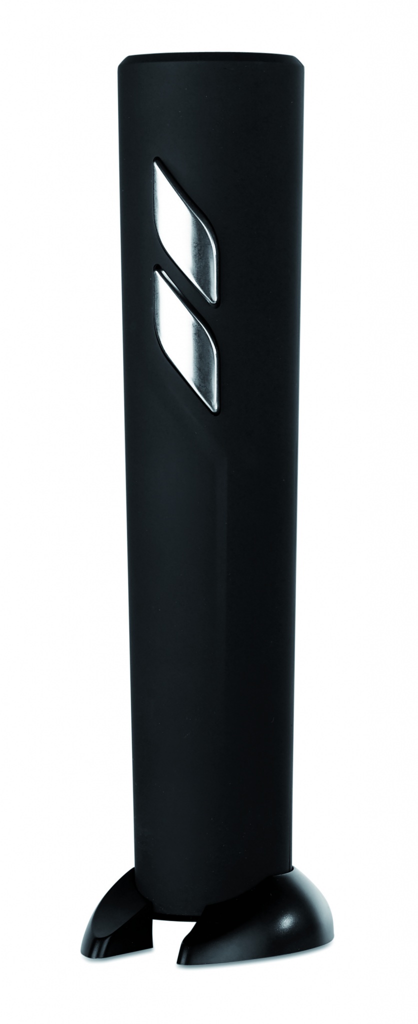 Sähköinen viinipullonavaaja ABS- muovi kotelolla, musta mattapintainen viimeistely. Sisältää folio leikkurin integroituna jalustaan, patterit eivät sisälly toimitukseen.