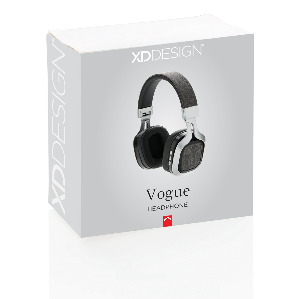 Vogue kuulokkeet ovat trendikkäät kankaiset korvat kokonaan peittävät kuulokkeet. Loistava äänikokemus ja mukavan tuntuinen. Trendikäs kangas kuulokkeiden ulkopuolella ja mukava PU-materiaali korvapehmusteissa, mikä mahdollistaa pitkäaikaisen käytön. Voidaan taittaa ja helppo ottaa mukaan matkoille. Vogue kuulokkeet käyttävät BT 4.1 yhteyttä, käyttöetäisyys jopa 10 metriä. 200mAh patteri jopa 6 tunnin musiikin kuuntelulle. Handsfree-toiminto puheluihin vastaamista varten. Mukana mikroUSB-johto. Rekisteröity design®