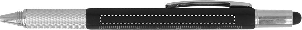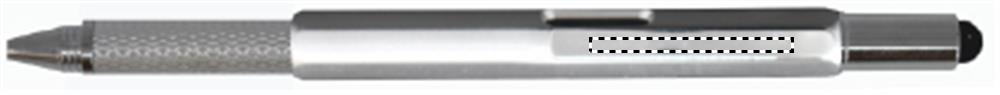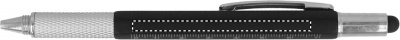 Twist veiksmo gulsčiuko rašiklis iš ABS su liniuote, rašikliu ir „philips“ galvute bei plokščios galvutės atsuktuvo antgaliais. Juodas rašalas.
