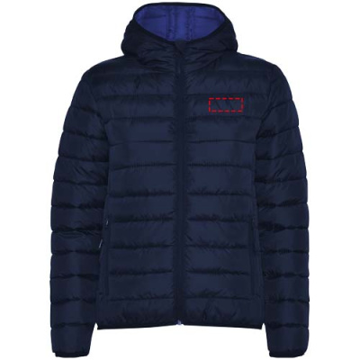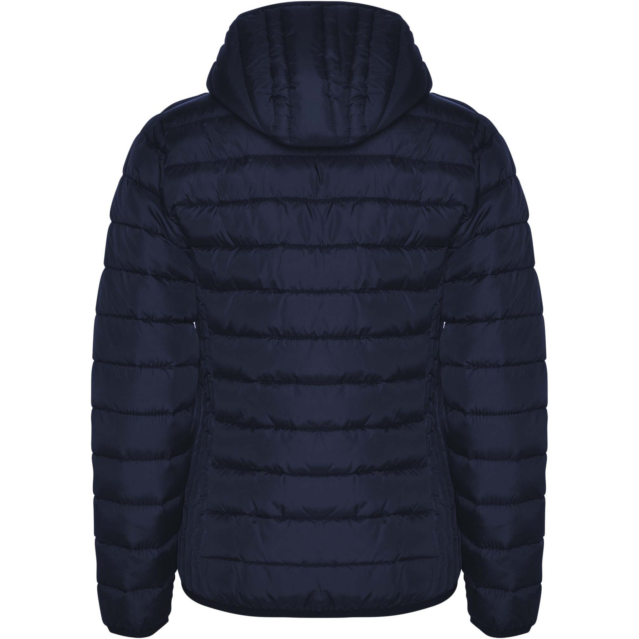 Moteriška dygsniuota striukė su plunksnomis su gobtuvu. Apversti užtrauktukai su tinkama smakro apsauga. Dvi priekinės kišenės su užtrauktuku. Tinkanti elastinė apdaila rankogalių, apačios ir gobtuvo srityje. Kontrastingas vidinis pamušalas. Pridedamas nešiojimo krepšys. Lengvas ir sulankstomas drabužis. Pritaikytas-kirptas. Atsparus vandeniui. Vėjo nepraleidžiantis modelis.
