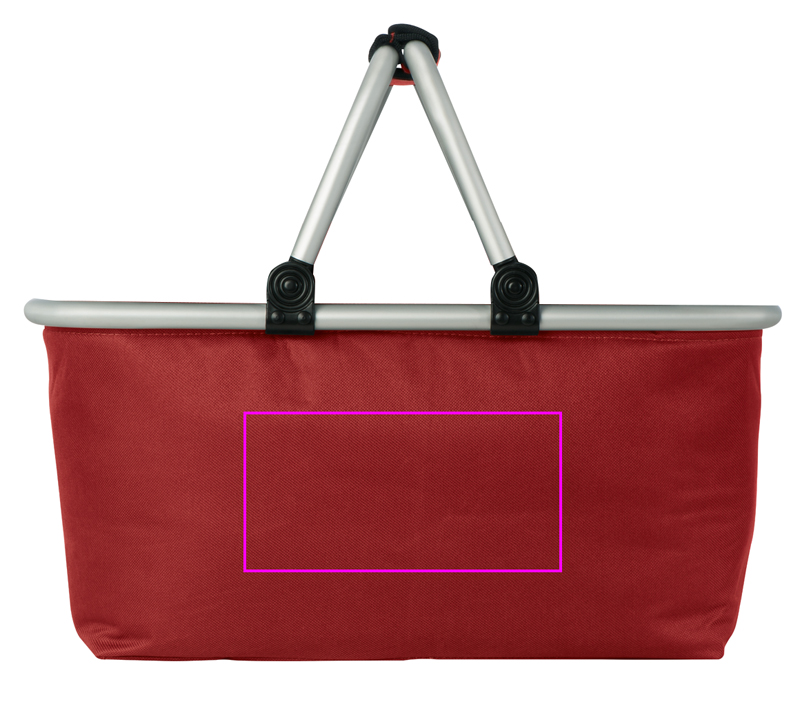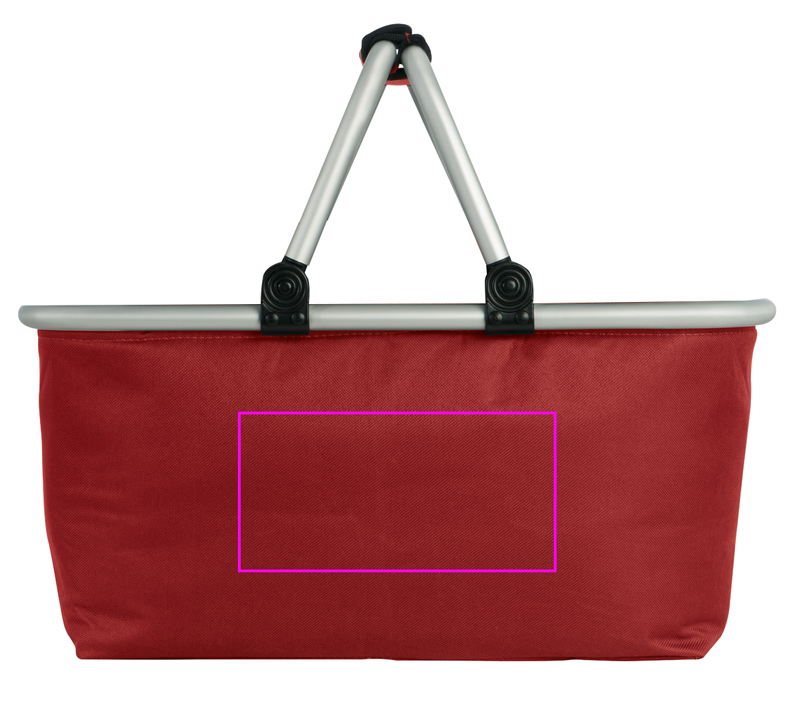 Pirkinių krepšelis su įvairių spalvų aliuminio rėmu, todėl apsipirkimas yra paprastas. Atspausdiname Jūsų logotipą vienoje pusėje,
