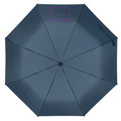 Automatinis kišeninis skėtis su stiklo pluošto rėmu, dangtelis iš perdirbtų PET butelių, medinė rankena ir riešo dirželis. Jūsų logotipas bus atspausdintas viename segmente.