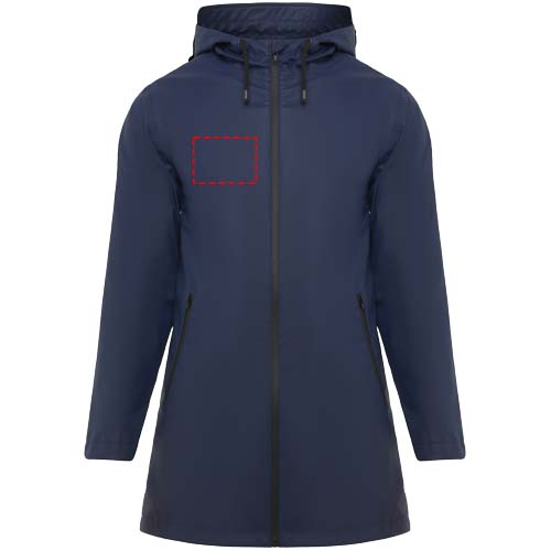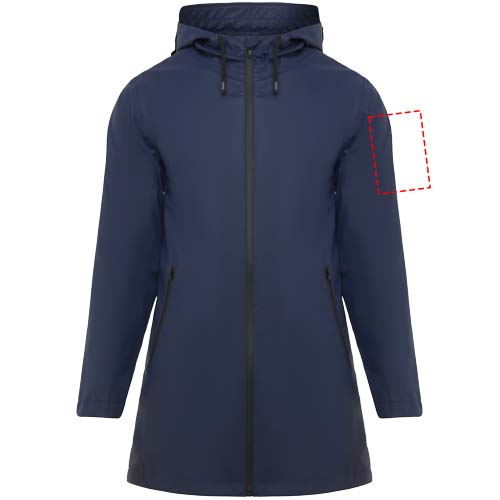 Neperšlampamas lietpaltis moterims. Gaubtas su smaigaliu. Termiškai sandarinami užtrauktukai ir siūlės. Juodos spalvos kontrastingos detalės. Dvi šoninės kišenės su užtrauktuku. Skeltukas nugaroje. Nuimama etiketė. Atsparus vandeniui. Modelis yra 179 cm ūgio ir dėvi S dydį.