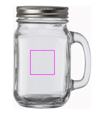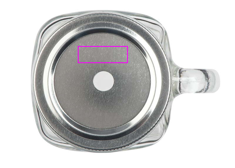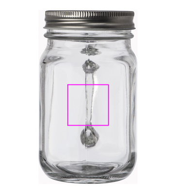 Stiklinis ąsotis (450 ml) su metaliniu užsukamu dangteliu ir šiaudų anga (šiaudai neįeina). Jūsų logotipas bus išgraviruotas lazeriu ant užsukamo viršaus.