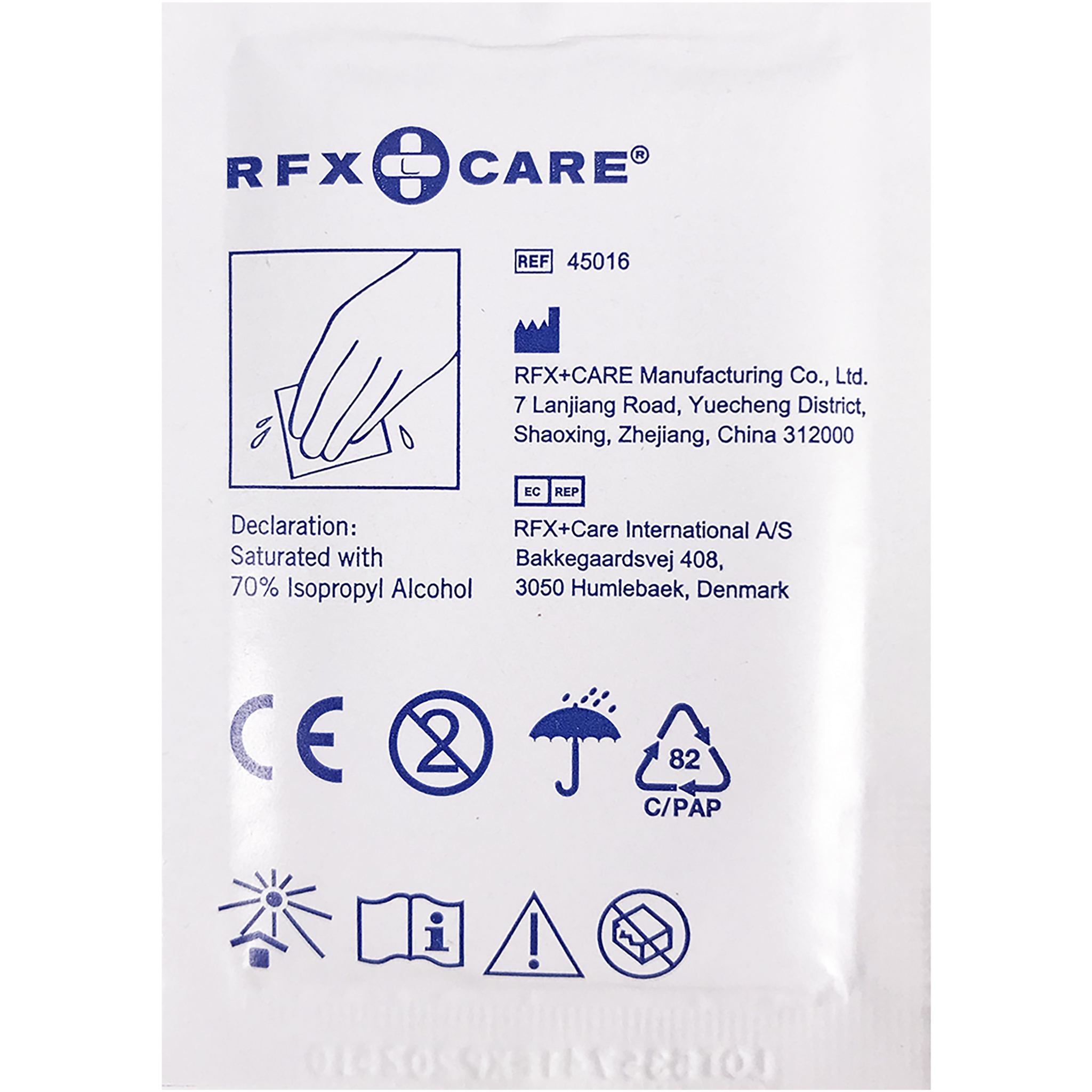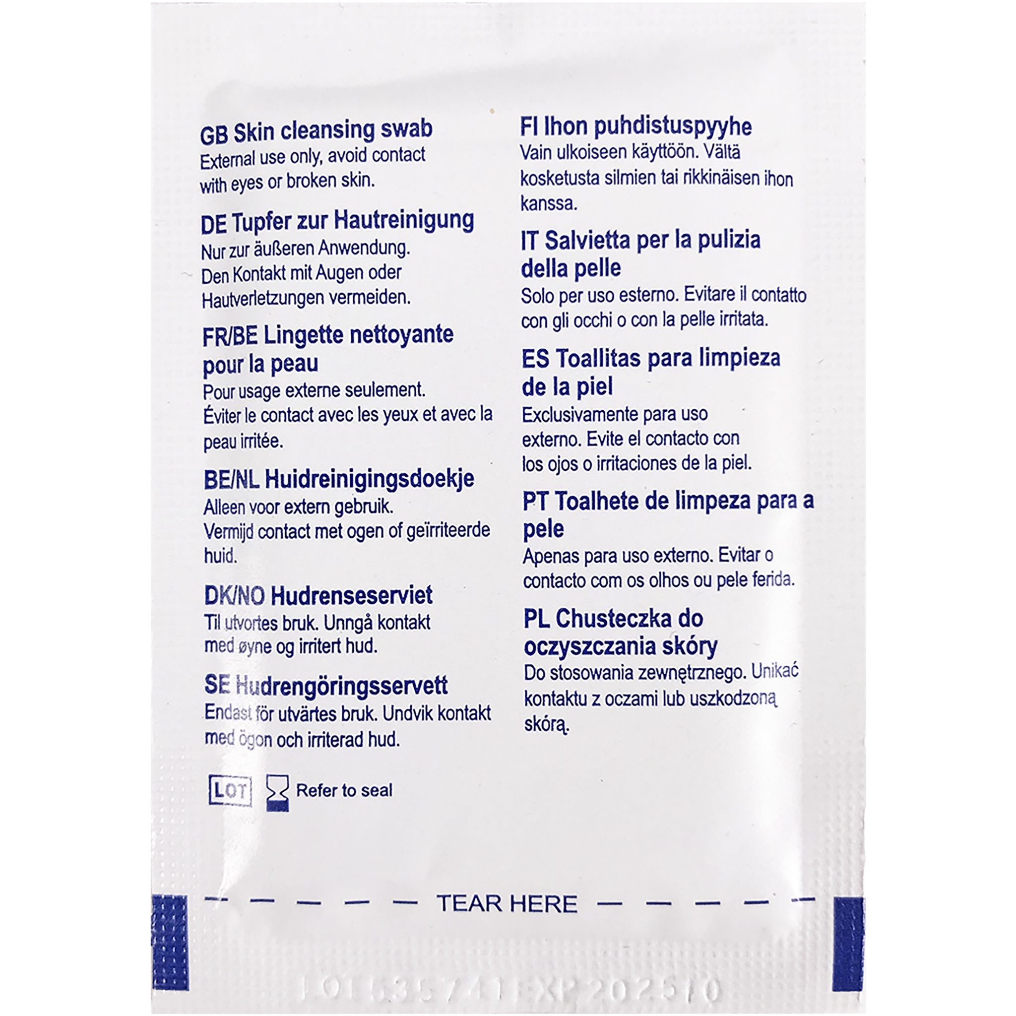 Mitrās salvetes roku un bieži lietojamu virsmu tīrīšanai (viedtālruņi, iepirkumu ratiņi, klaviatūras utt.). Piegādāts ar alumīniju pārklātā iepakojumā (8,5x6 cm) un izvelkams līdz 18x12 cm, lai ērti apstrādātu uz jebkuras lielas virsmas. Satur 70% izopropilspirtu, kas attīra un ātri izžūst pēc lietošanas. Piegādāts kartona kastē 15,5 x 12 x 8,5 cm.