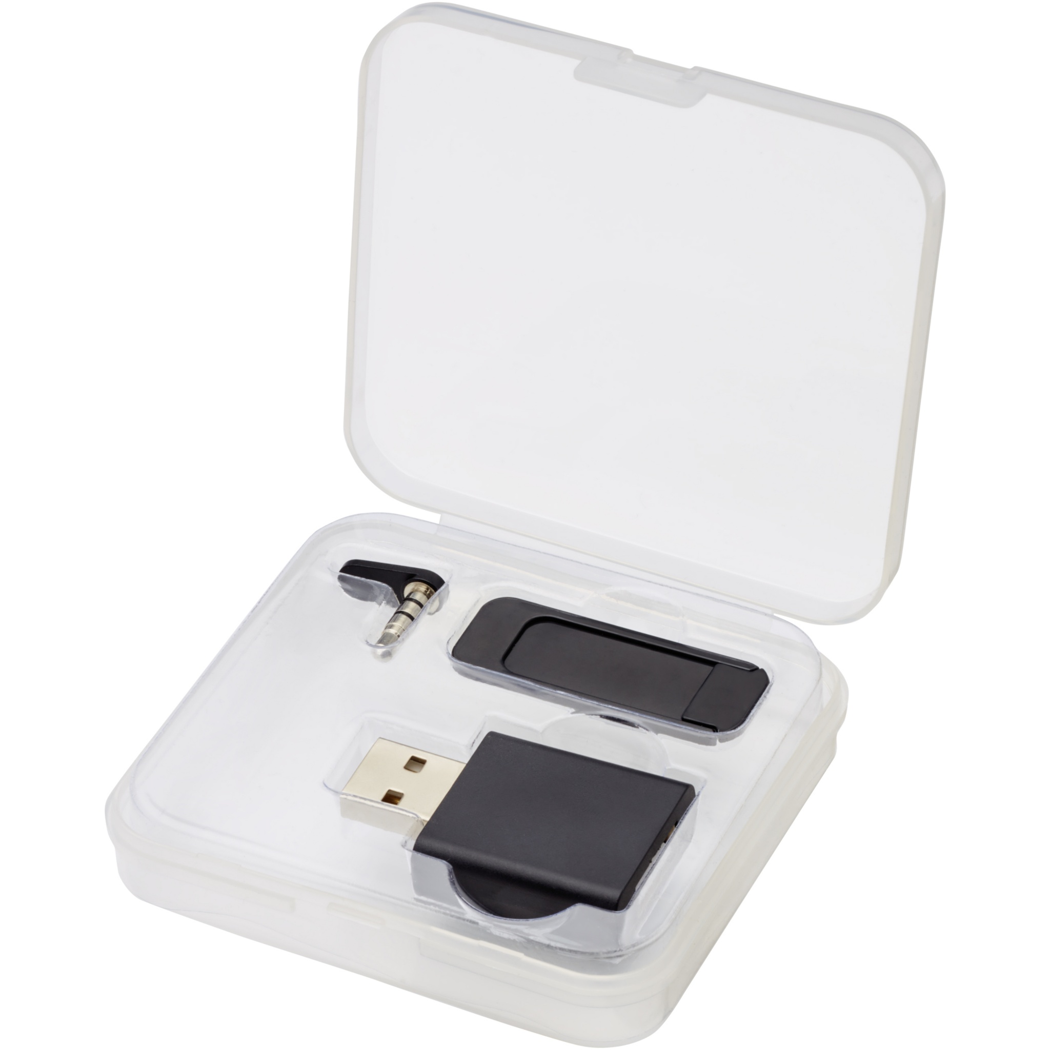 Digitālais privātuma komplekts, kurā ietilpst USB datu bloķētājs, tīmekļa kameras bloķētājs un audio ligzdas bloķētājs. USB datu aizsargs novērš nejaušu datu apmaiņu, pievienojot mobilo ierīci datoram vai publiskai uzlādes stacijai. Vienums bloķēs jebkādu datu pārsūtīšanu, kamēr ierīce tiek uzlādēta, novēršot datu nozagšanu vai ļaunprātīgas programmatūras instalēšanu. Tīmekļa kameras bloķētāju var piestiprināt klēpjdatora tīmekļa kameras priekšā, lai bloķētu jebkādu nevēlamu piekļuvi tīmekļa kamerai. Audio ligzdas bloķētāju var ievietot ierīces AUX pieslēgvietā, lai izvairītos no sarunu klausīšanās trešajām personām. Piegādāts aizsargkastītē.