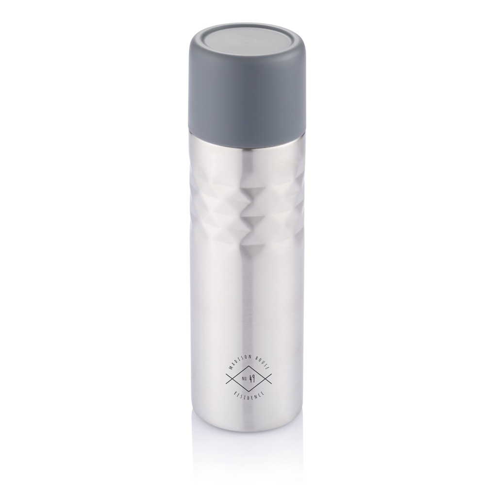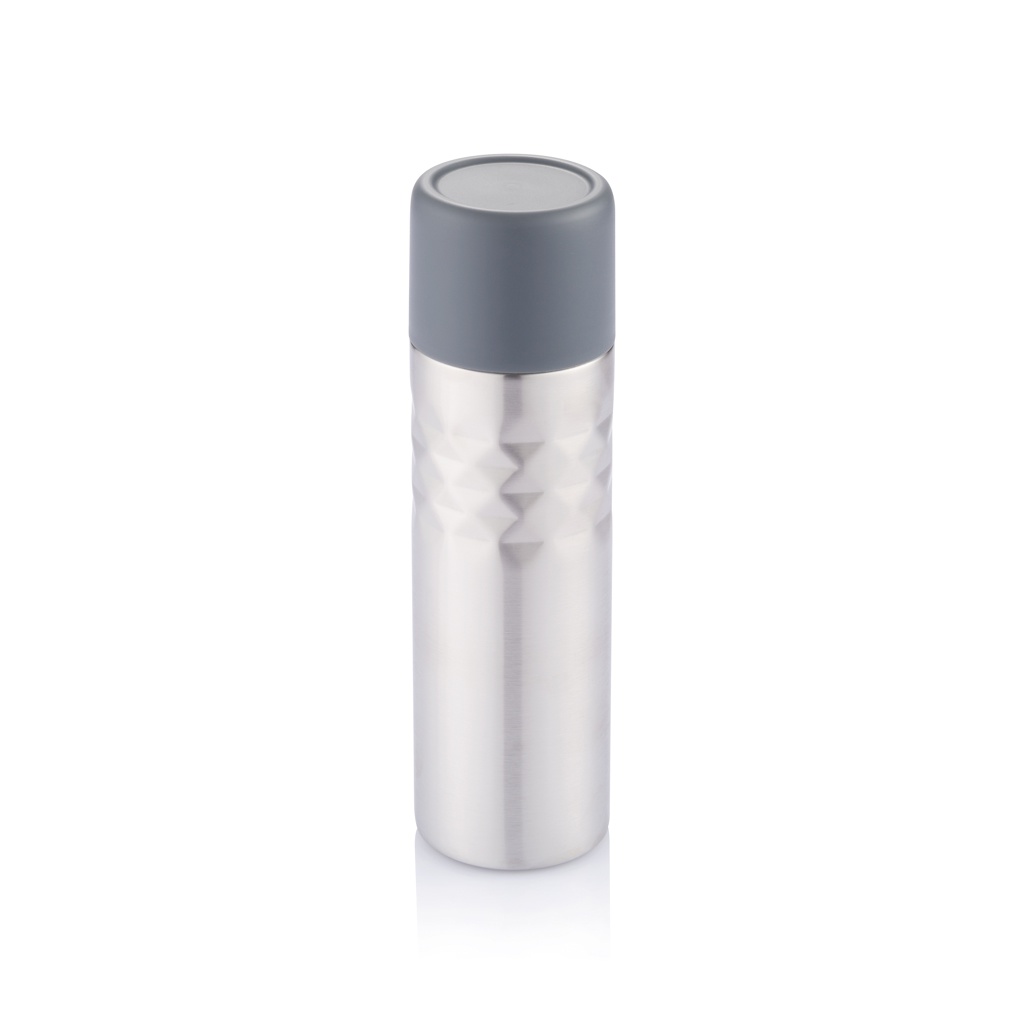 Mosa ir moderna 500 ml dubultsienas vakuuma kolba no izturīga 201 nerūsējošā tērauda. Kolba aizveras ar PP vāku, ko var izmantot karsto dzērienu baudīšanai. Reģistrēts dizains®