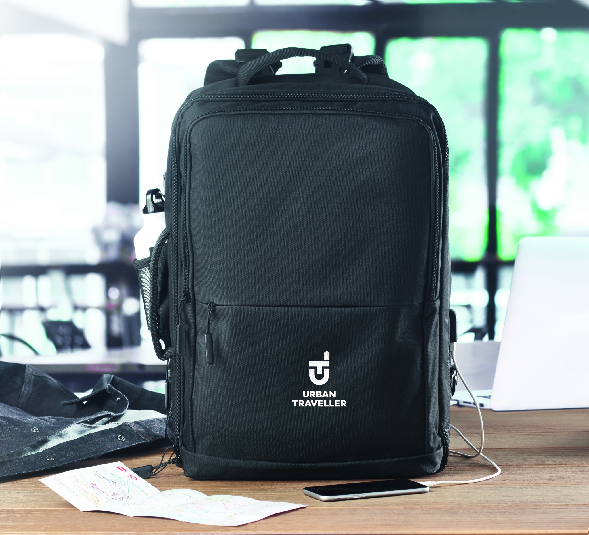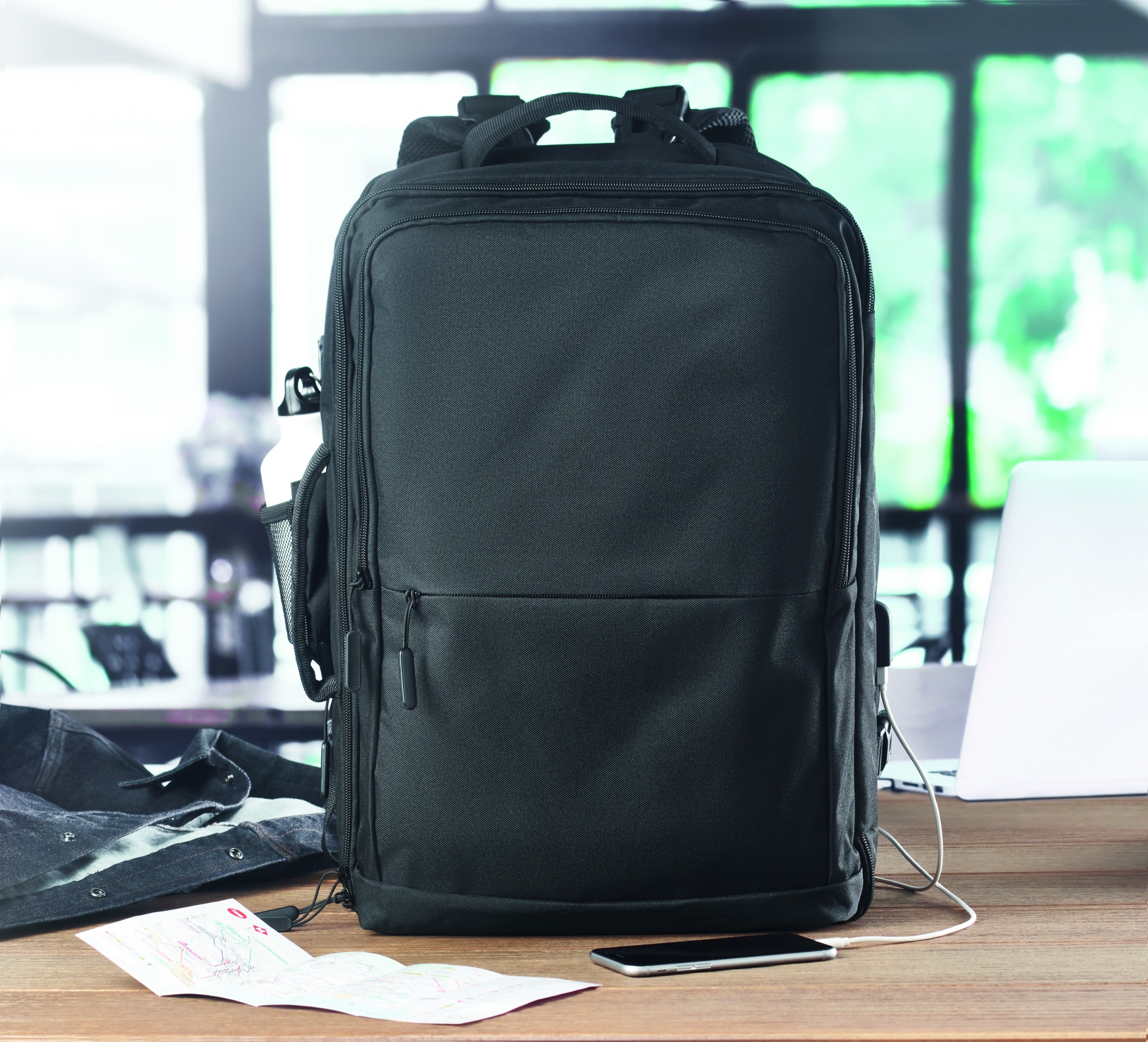 Travel Tech mugursoma no 600D RPET poliestera. Moduļu / ar vairākiem nodalījumiem.