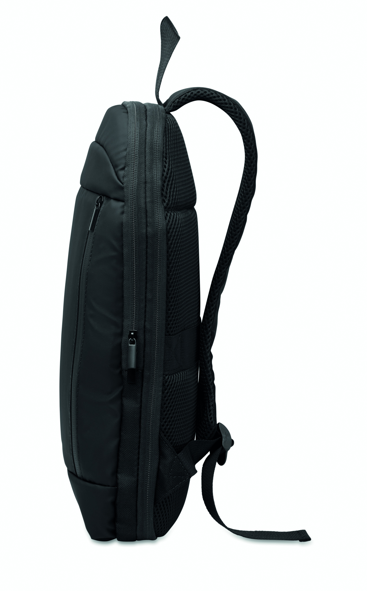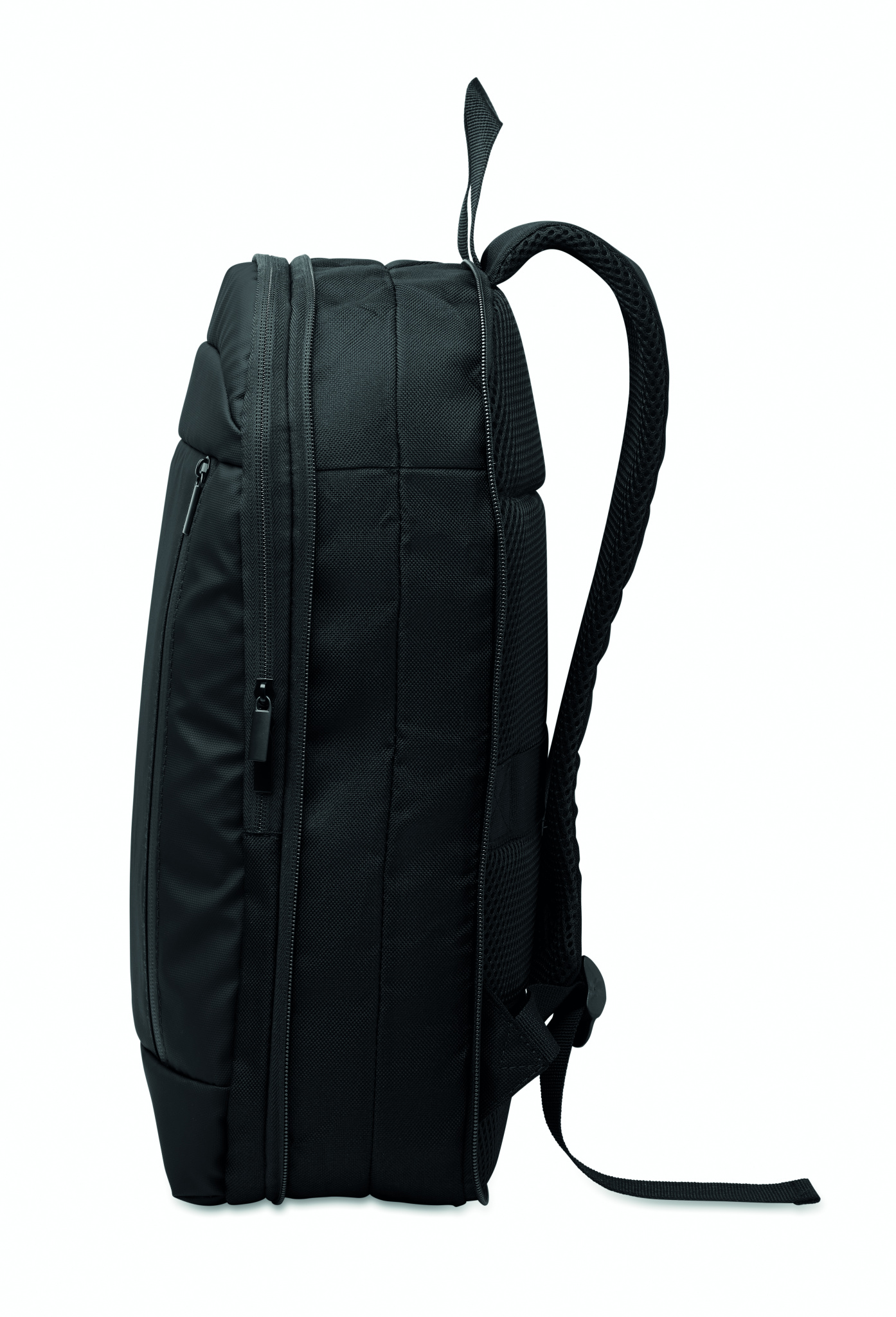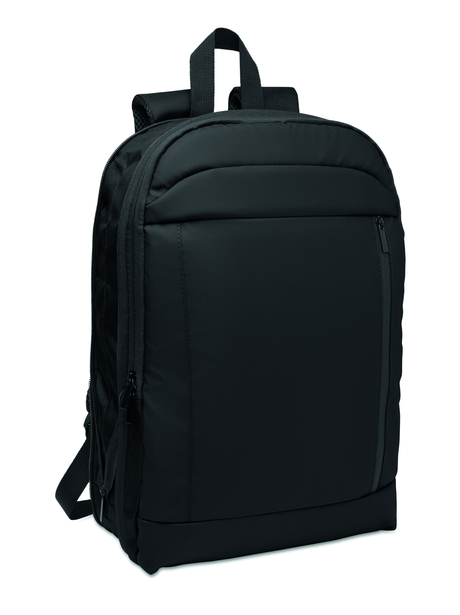 Paplašināma 600D RPET poliestera datora mugursoma 16 collas ar PU pārklājumu priekšpusē un RPET poliestera oderi. Slēpta kabata ar rāvējslēdzēju un polsterēts nodalījums klēpjdatoram, priekšējais nodalījums, sieta aizmugure un bagāžas siksna.