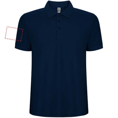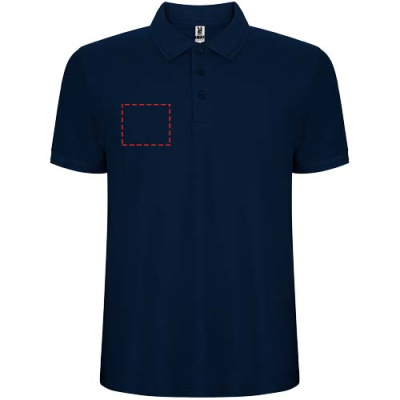 Polo krekls ar īsām piedurknēm. Apkakle un piedurkņu apmale no 1x1 rievota auduma ar detaļām. 3 pogu skava. Pastiprinātas pārklātas šuves apkakle. Sānu šķēlumi un izvēles kabata. Noņemama etiķete. Pretspiešanas ārstēšana.
