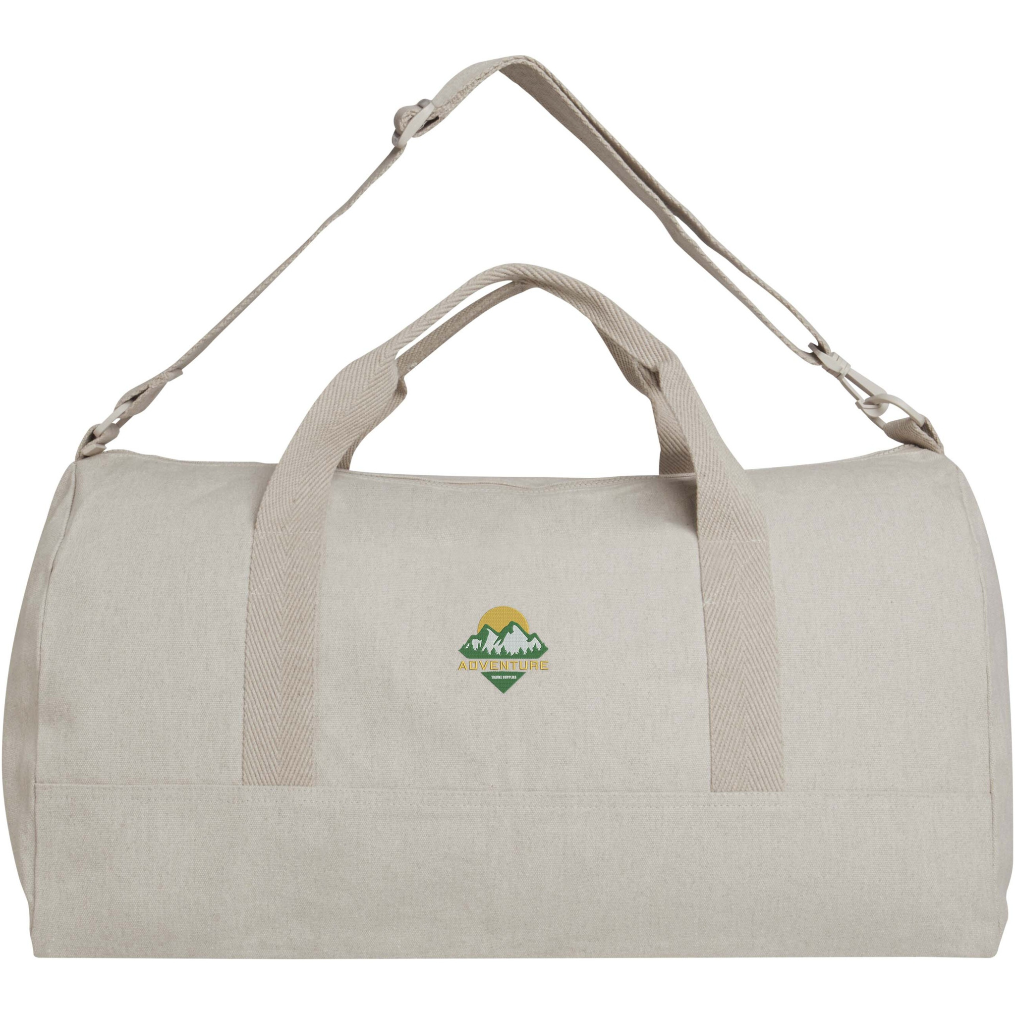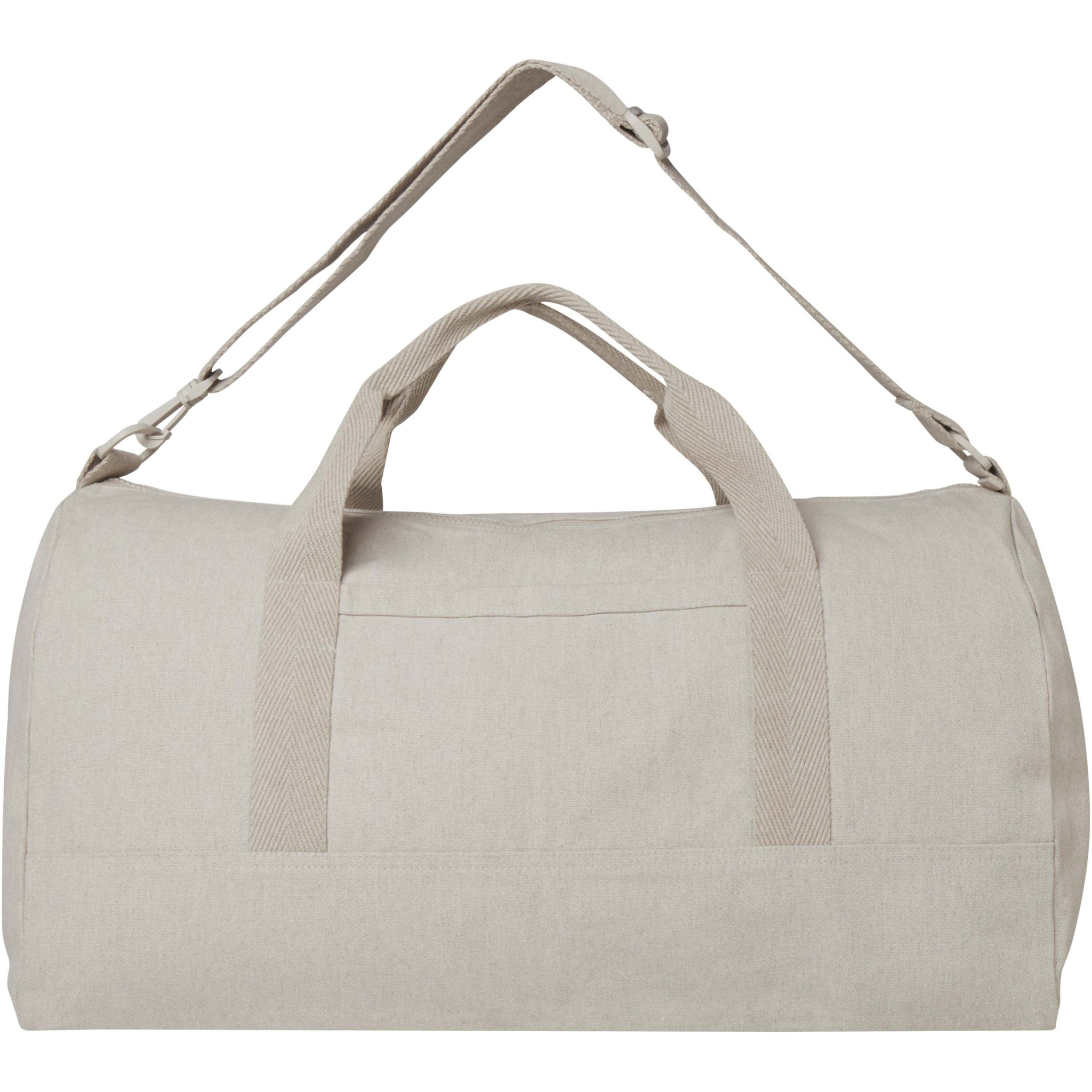 Porter somiņai, kas izgatavota no 500 g/m² pārstrādāta kokvilnas un pārstrādāta poliestera, ir ietilpīgs galvenais nodalījums optimālai lielāku priekšmetu glabāšanai un neliela priekšējā kabata nelielu priekšmetu, piemēram, pases vai tālruņa, glabāšanai. Dufeli var nēsāt aiz 2 īsiem rokturiem vai ar paplašināmu un noņemamu plecu siksnu, ko var noregulēt, lai nodrošinātu maksimālu komfortu. Duffel maisā ir izmantotas Cyclo® otrreizēji pārstrādātas šķiedras, kurās tiek izmantoti iepriekš šķiroti atkritumi, kas nosaka dzijas krāsu. Šīs šķiedras ne tikai samazina pieprasījumu pēc neapstrādātiem resursiem, bet arī parāda apņemšanos nodrošināt apļveida dzīvi, iemiesojot atkritumu samazināšanas būtību un veicinot slēgta cikla sistēmu. Katrai somai ir arī Aware™ marķieris. Šī novatoriskā funkcija ļauj lietotājiem izsekot preces izcelsmei un gaitai, izmantojot QR kodu, uzlabojot piegādes ķēdes pārredzamību un veicinot ciešāku saikni starp produktu un tā ražošanas procesu. Tilpums: 50 litri.