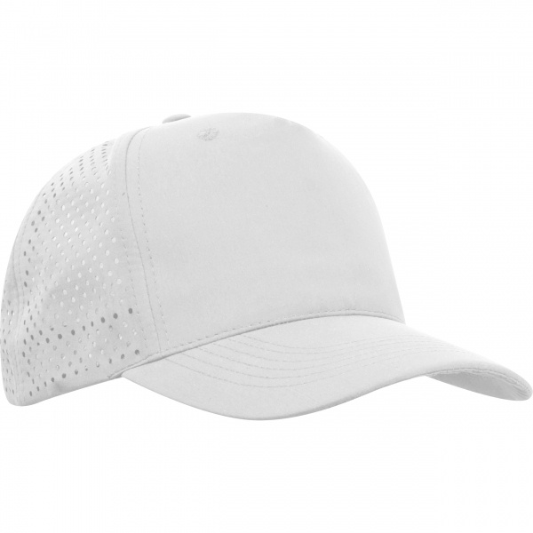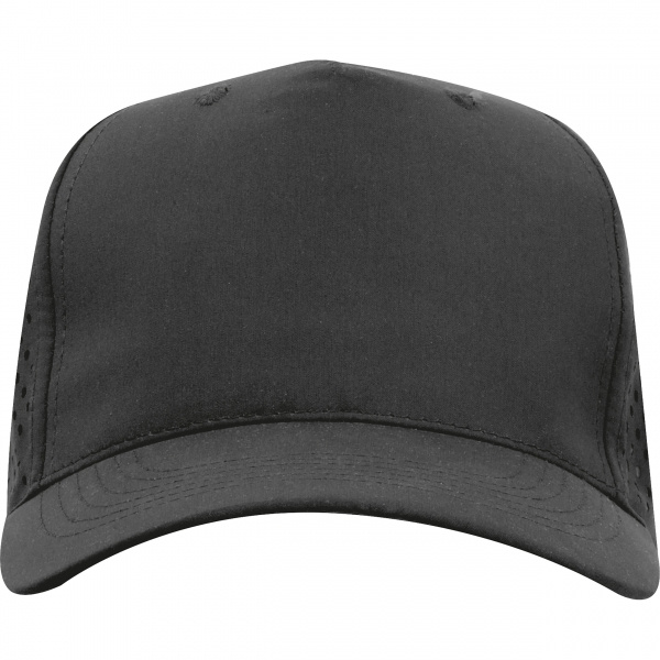 5 paneļu beisbola cepure, kas izgatavota no poliestera, ar āķa un cilpas aizdari aizmugurē un iekšējo sviedru lenti. Perforētais dizains nodrošina īpaši ērtu un elpojošu piegulšanu. Jūsu logotips ir iespiests priekšējā paneļa centrā. Izšuvums pieejams pēc pieprasījuma.