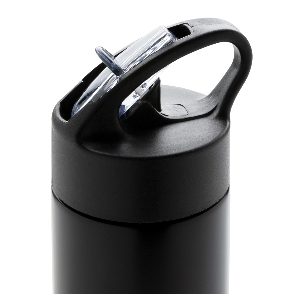 Sport ir ilgtspējīga dzeramā pudele ar ietilpību 500 ml. Tā vietā, lai izmantotu plastmasas pudeli, izmantojiet un atkārtoti izmantojiet šo nerūsējošā tērauda sporta pudeli ar praktiskiem salmiem, lai remdētu slāpes. Reģistrēts dizains®